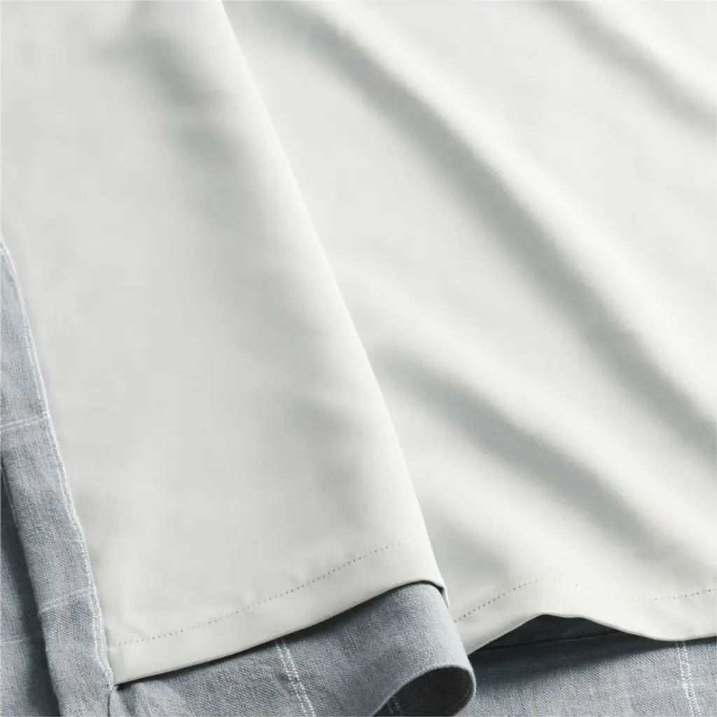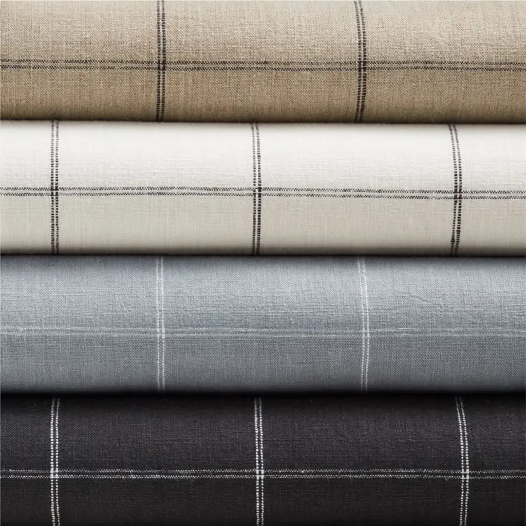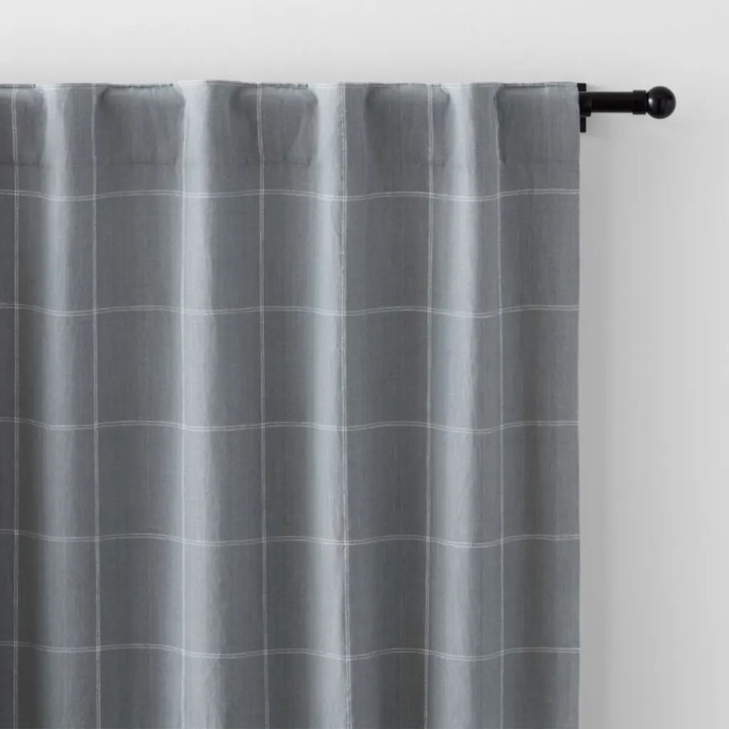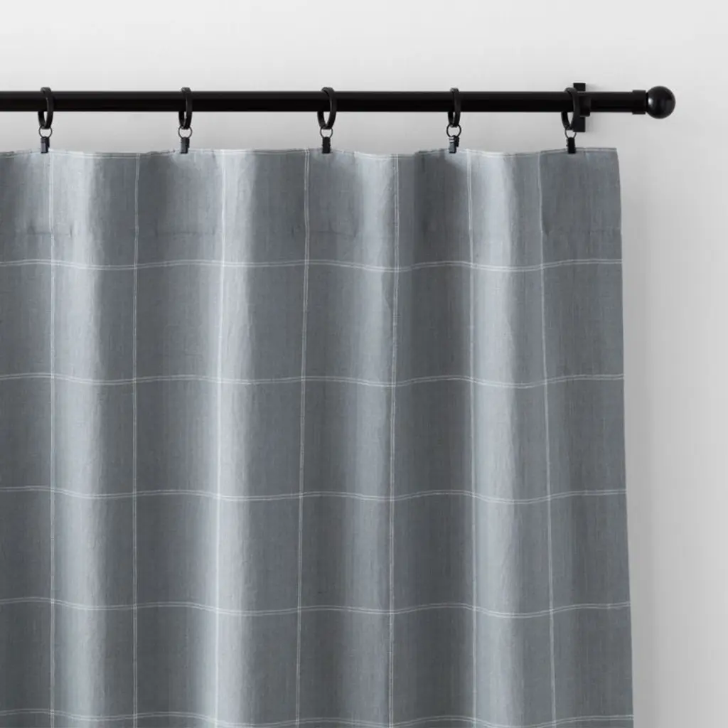 Our curtain panels frame windows with a decor-friendly pattern and the breezy look of natural linen. With a graceful drape, the soft blue curtains showcase windowpane checks composed of double-lined pinstripes in crisp white. A blackout lining blocks unwanted illumination and provides privacy, while putting the focus on the organic beauty of woven linen. Hang our exclusive linen curtains with blackout liners from the back tabs for a pleated look, or use the rod pockets to create a more casual, gathered appearance.Try it on first. Since color representation may vary by screen, using a swatch is an easy way to see exactly how your favorite curtain panels will look in your home. Choose up to five free curtain swatches, and we'll ship them to you at no cost.Curtain hardwarealso available.Learn how to hang curtains in our guide.
