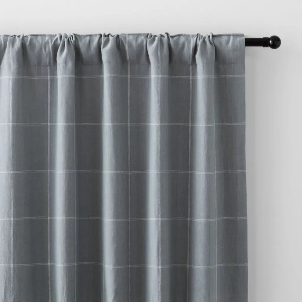 Our curtain panels frame windows with the breezy look of natural linen. Showcasing the organic beauty of woven linen, the soft blue curtain has a hint of decor-friendly pattern in windowpane checks composed of double-lined pinstripes in crisp white. Hang our cotton-lined linen curtains for an elegant pleated style, use the rod pocket to create a more laid-back gathered look or add a set of our curtain clips (sold separately).Try it on first. Since color representation may vary by screen, using a swatch is an easy way to see exactly how your favorite curtain panels will look in your home. Choose up to five free curtain swatches, and we'll ship them to you at no cost.Curtain hardwarealso available.Learn how to hang curtains in our guide.