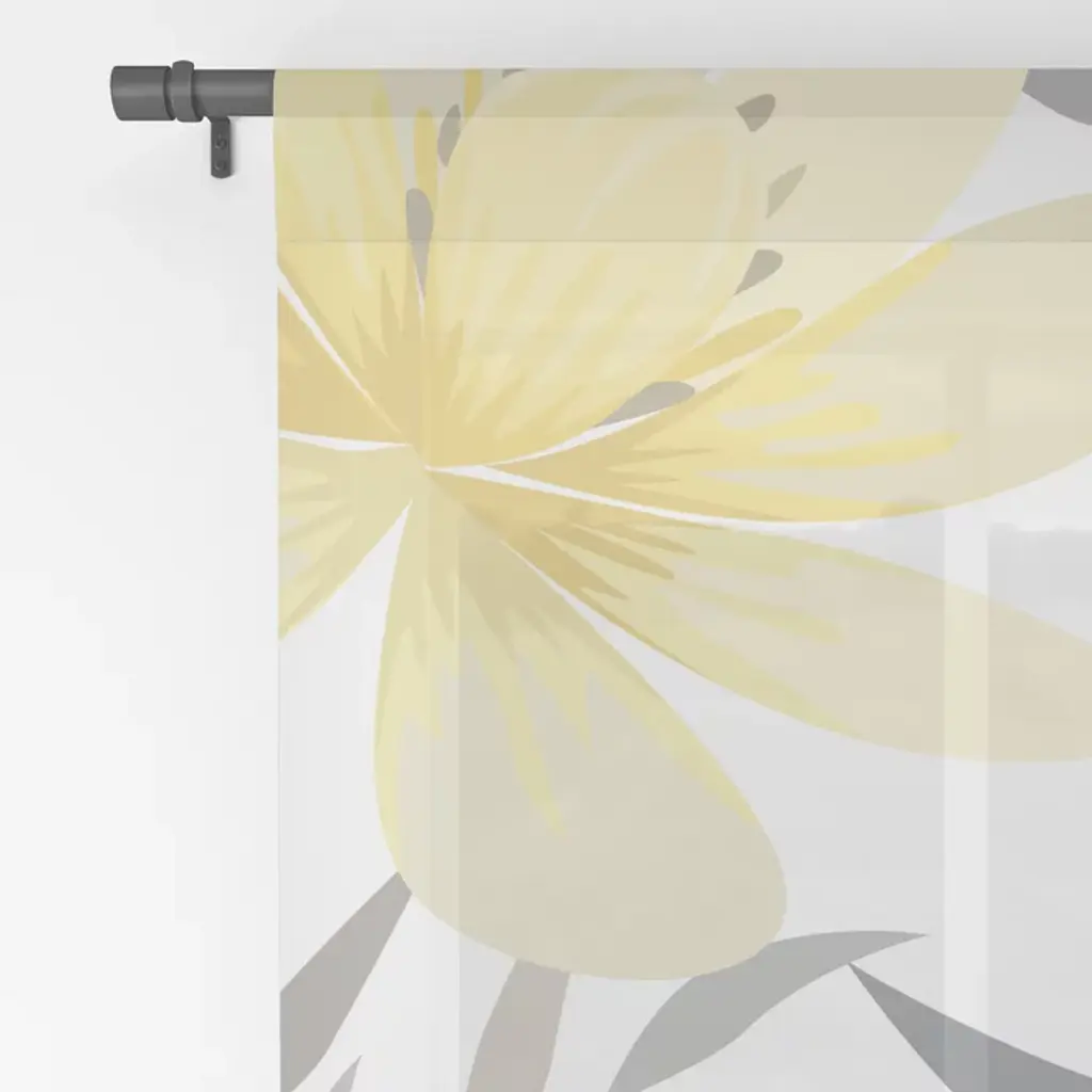 Modern, Floral Prints, Yellow, Gray And White Curtain