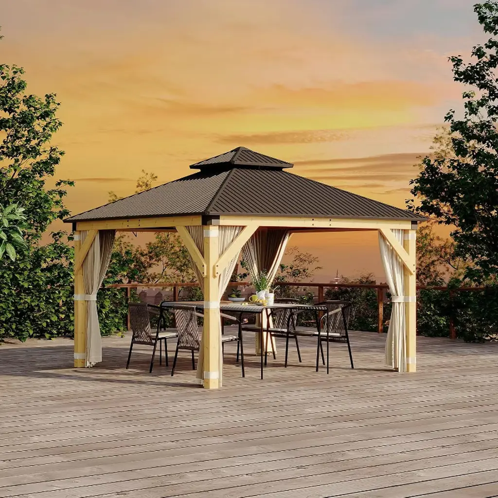 -Built with a sturdy galvanized steel double roof to shield you from intense sun and heavy snow, while the smart dual-layer ventilation ensures a cool, breezy atmosphere. Perfect for lazy afternoons, outdoor dining, or entertaining guests-all in a naturally elegant cedar wood frame. Durable, comfortable, and designed for year-round enjoyment. Create your perfect outdoor retreat today!