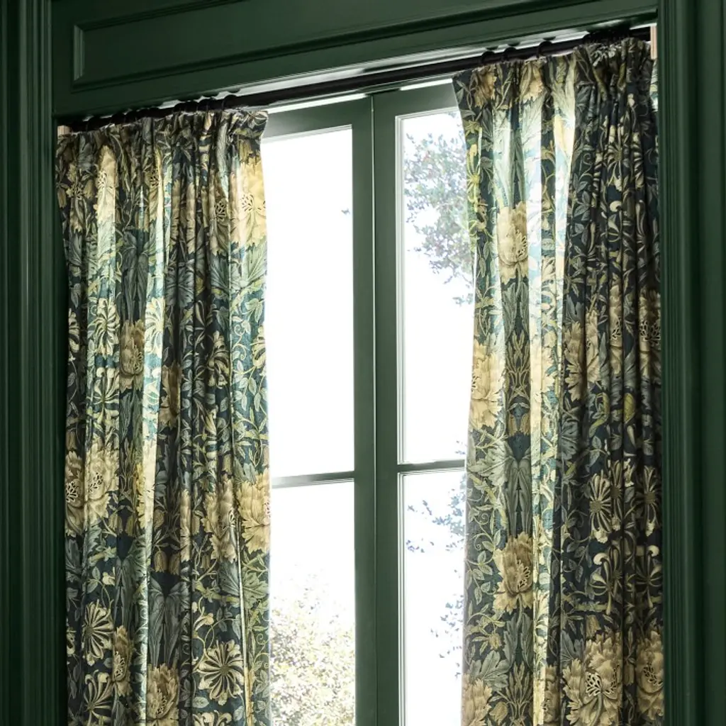 Morris & Co. designs are synonymous with the Arts and Crafts movement, featuring intricate motifs inspired by the natural world. Our Williams Sonoma Home x William Morris & Co. Collection features one of Morris's most iconic botanical designs, Honeysuckle and Tulip. It's expertly twill-woven on our premium cotton-linen curtains, lined in white blackout fabric and tailored with pinch pleats for an elegant drape.