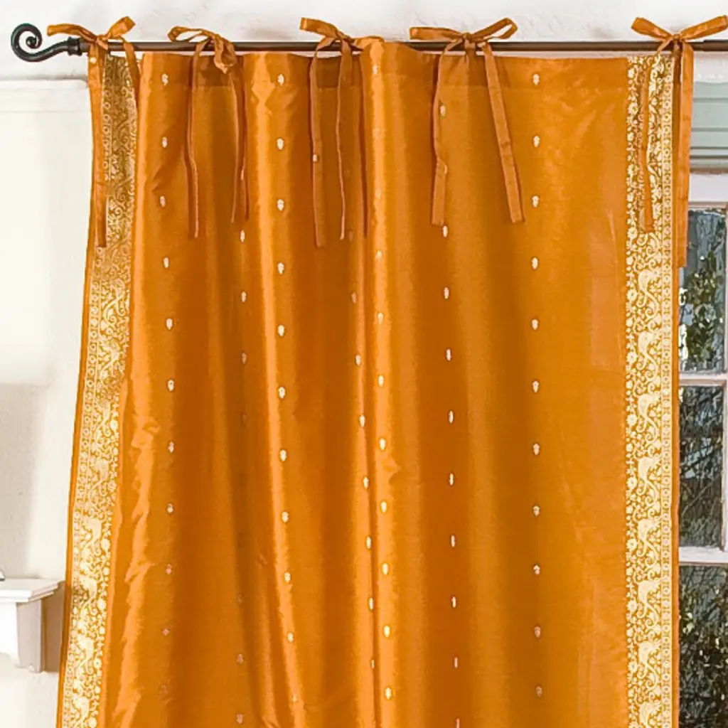 Mustard Tie Top Sheer Sari Curtain / Drape / Panel - Pair