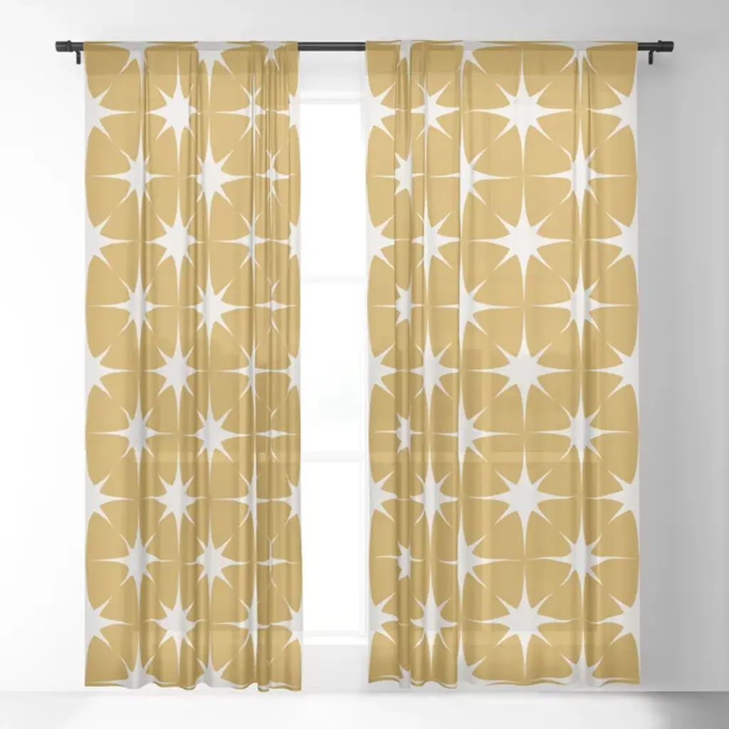 Mustard Yellow Midcentury Modern Atomic Starburst Curtain