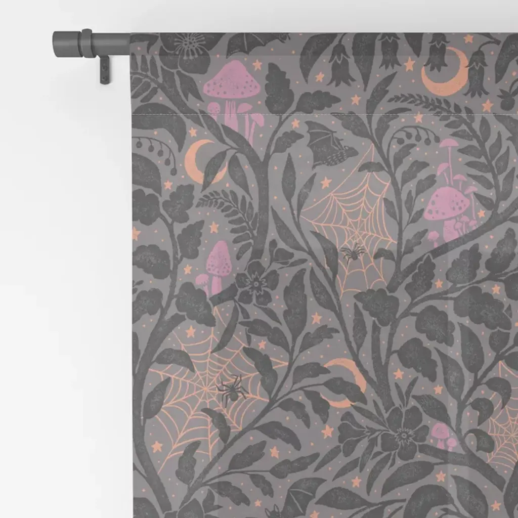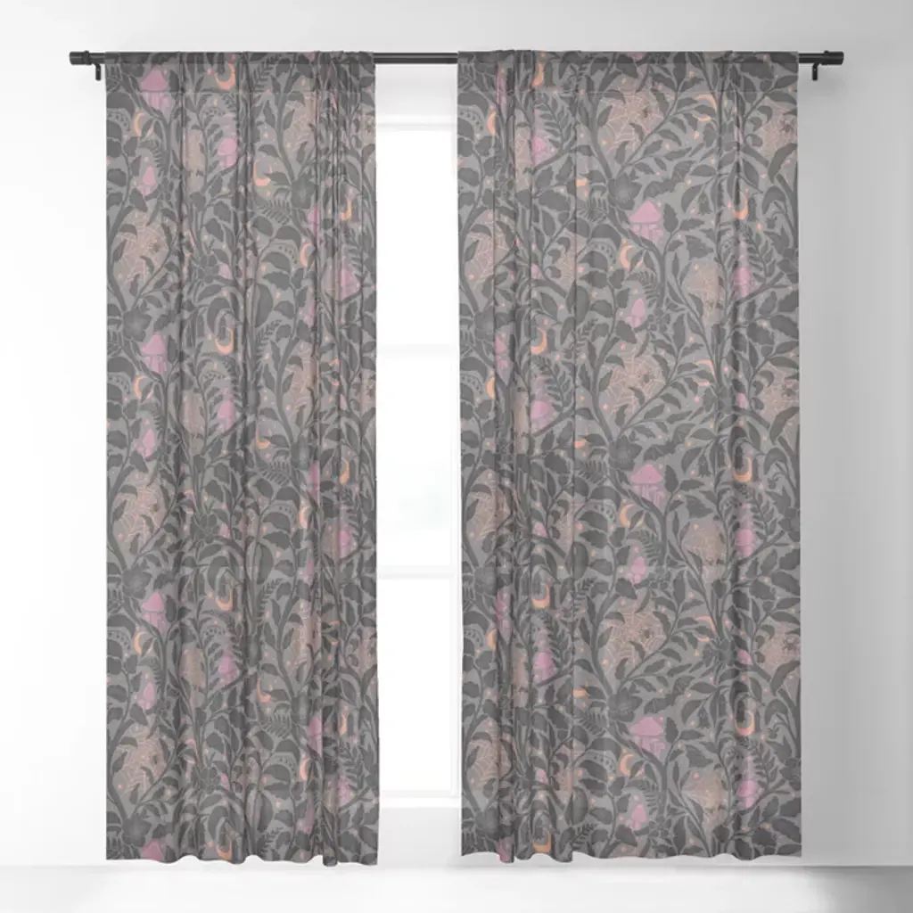 Mysterious Garden - Black, Gray, Orange, And Purple Curtain
