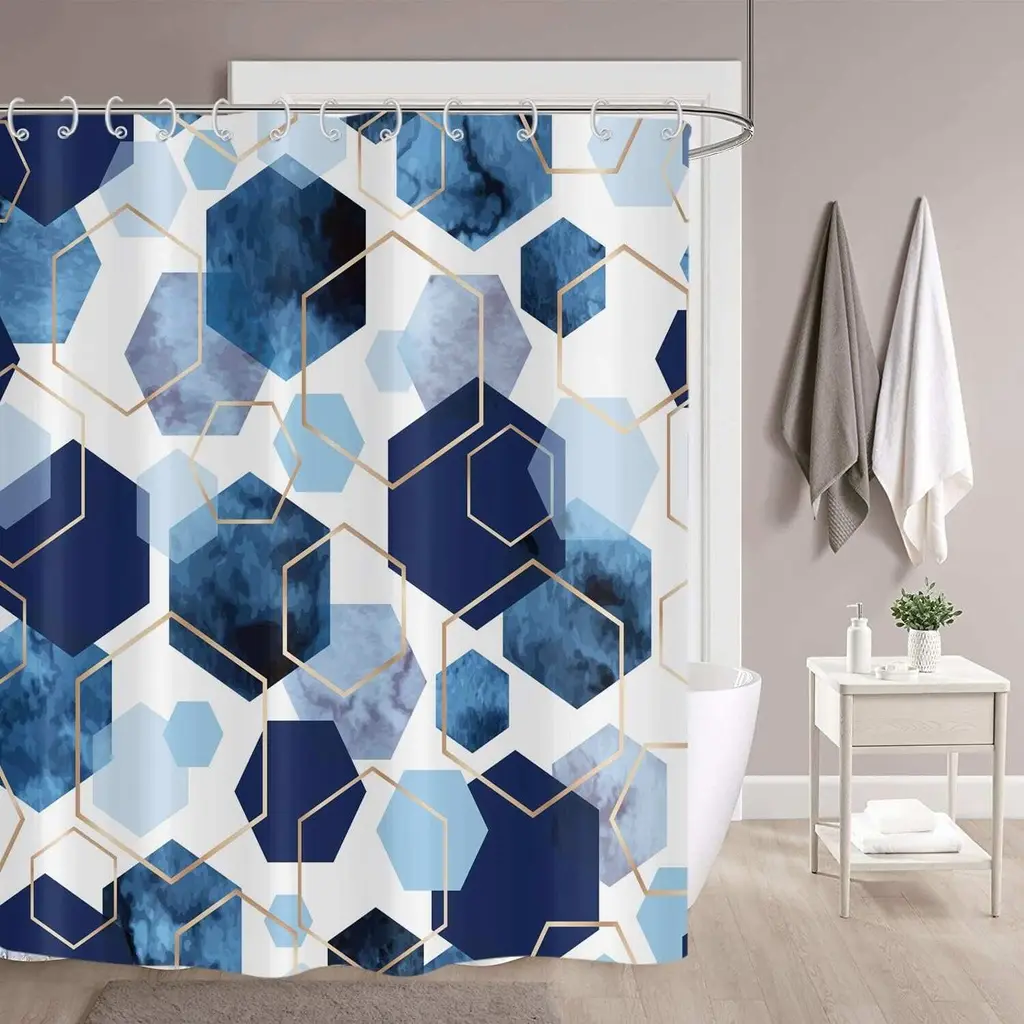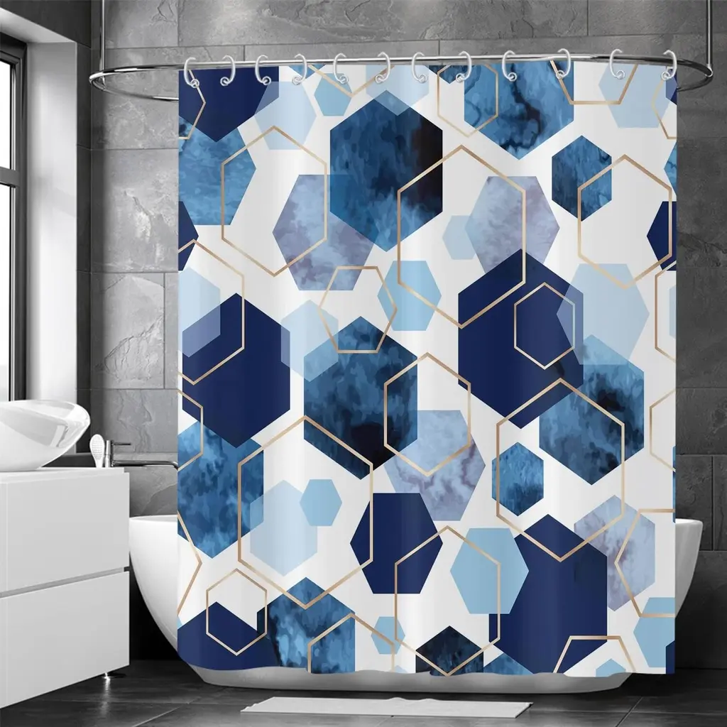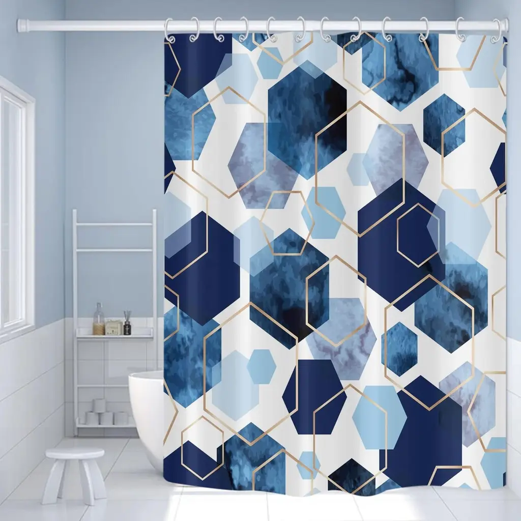 Introducing our Navy Blue Abstract Geometric Pattern Minimalist Bath Curtains, where modern elegance meets understated luxury! Measuring a generous 72Wx72H, this curtain is the epitome of sophistication for your bathroom. Crafted with meticulous attention to detail, the abstract geometric pattern in rich navy blue hues adds a touch of contemporary flair to your space, while maintaining a minimalist aesthetic. This curtain is designed to elevate your bathroom décor effortlessly. Upgrade your shower experience with our Navy Blue Abstract Geometric Pattern Minimalist Bath Curtains and transform your daily routine into a luxurious escape. Embrace the harmony of simplicity and style with this essential addition to your home.