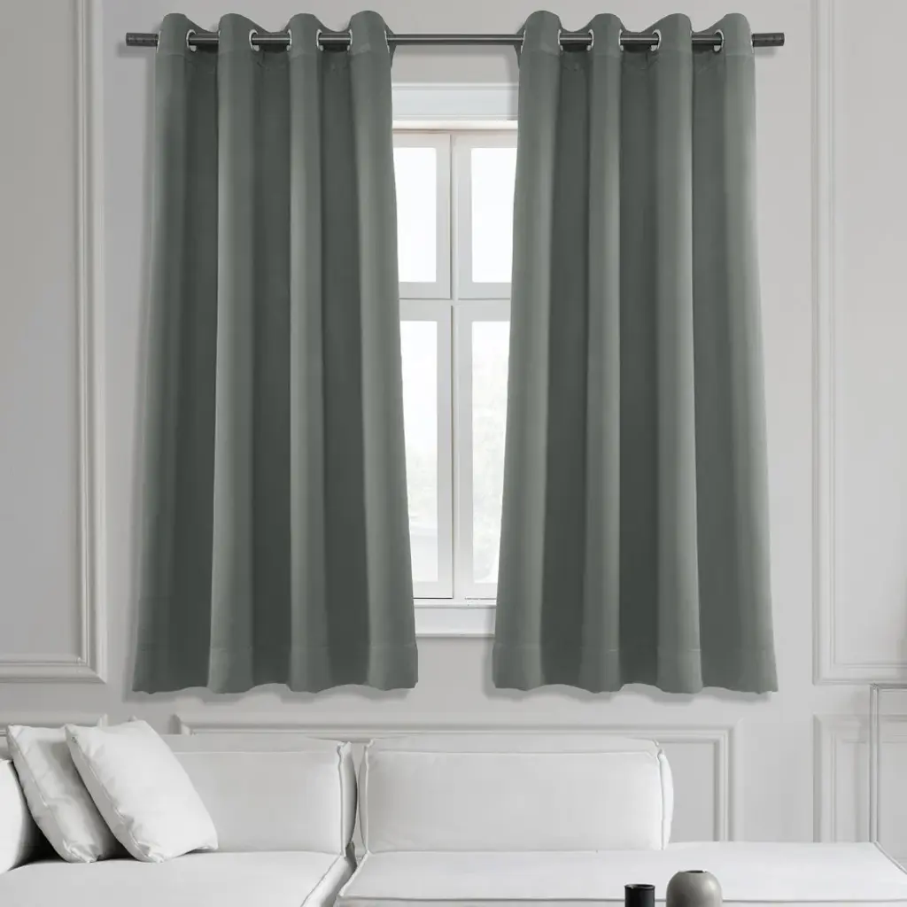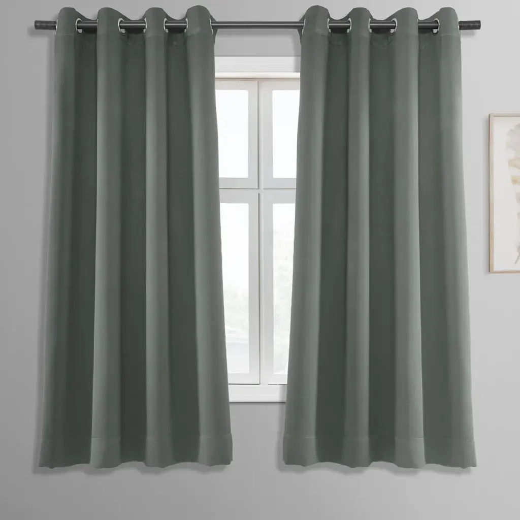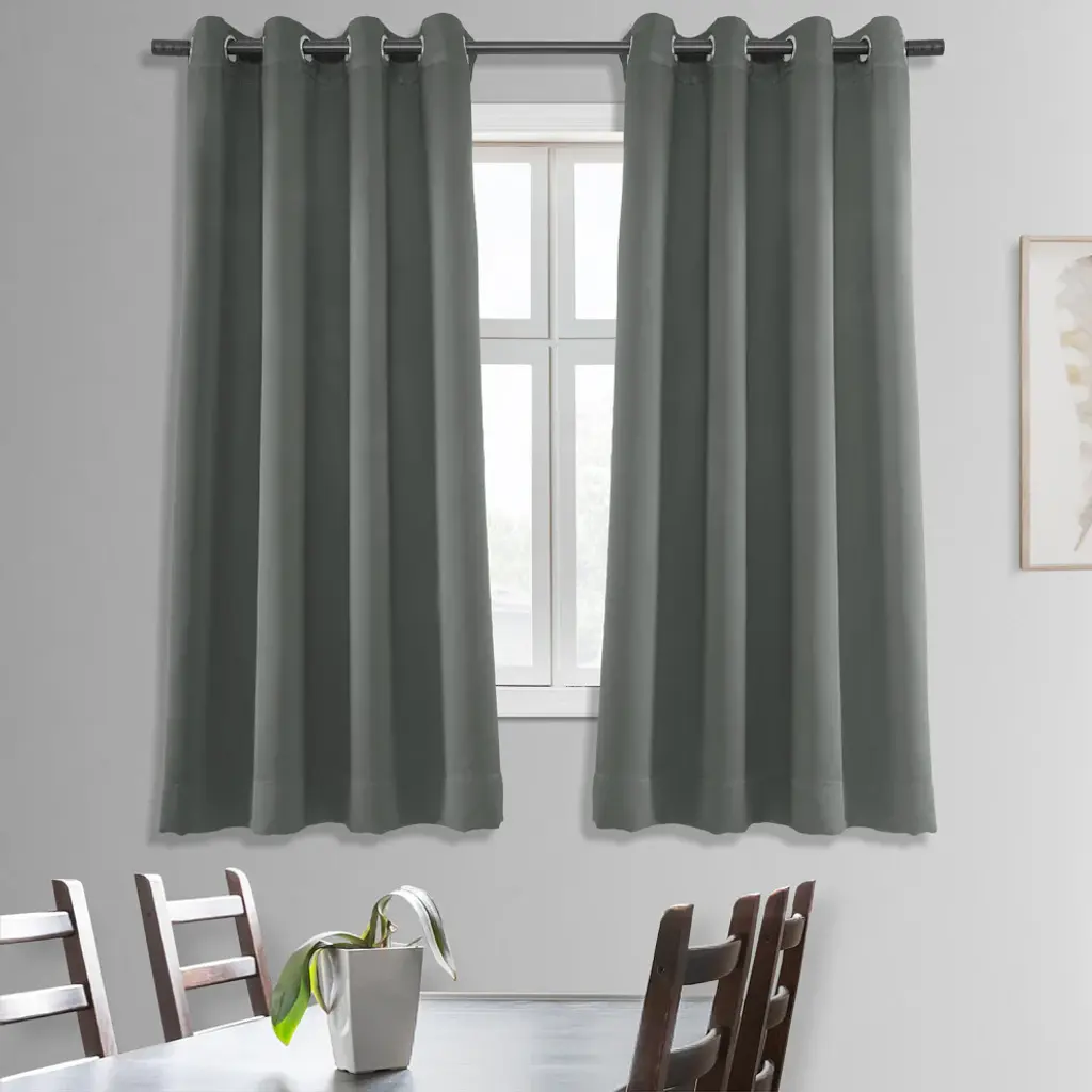 You will instantly fall in love with our room darkening curtains & drapes. The fabric is super soft with a refined texture made with a special polyester yarn. As a general rule, for proper fullness panels should measure 2-3 times the width of your window/opening.SOLD PER PAIRFinished With Nickel Finish Grommets100% PolyesterUnlinedWeighted HemDry Clean Only