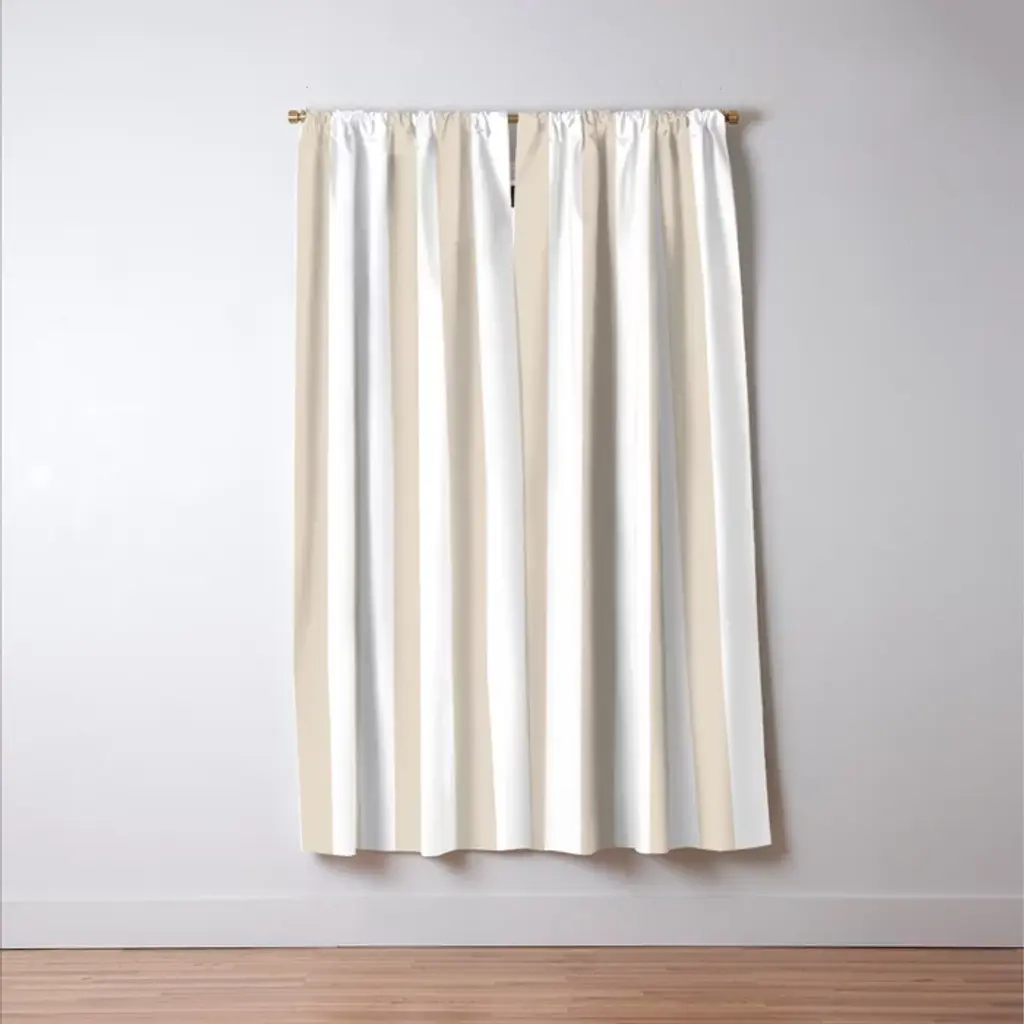 Neutral Stripes Narrow Vertical Stripe Pattern In Mushroom Beige And White Curtain