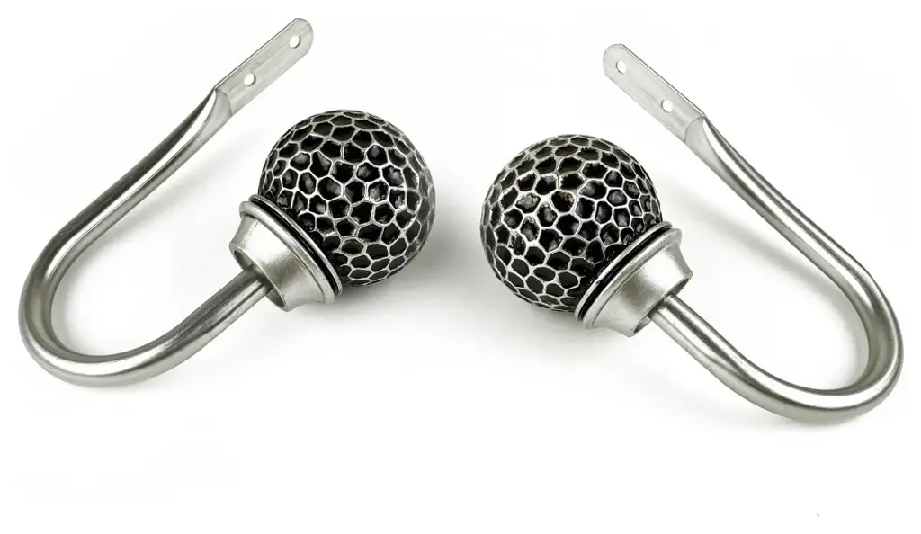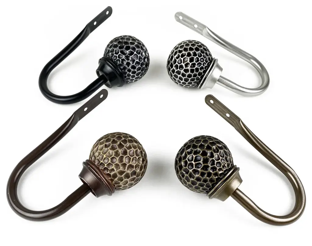 Elevate the style and functionality of your window treatment with Central Design Products latest addition - the 13/16" rod matching holdbacks. Our holdback pair is designed to add a refined touch to your home decor, while also serving a practical purpose. Each set includes a pair of decorative holdbacks and mounting hardware for easy installation. Our holdbacks feature a stunning resin finial, adding an alluring style to your curtains. Crafted with steel hooks and resin finials, our holdbacks are built to last and provide reliable support to your curtains. Upgrade your window treatment with these matching holdbacks and enjoy a refined and sophisticated touch to your home decor. Order now to experience the difference! Finial measurements: 2-1/2"Wx2-1/2"Hx1"D J-hook projection: 3 inches J-hook measurements: 5.75"Lx3"W