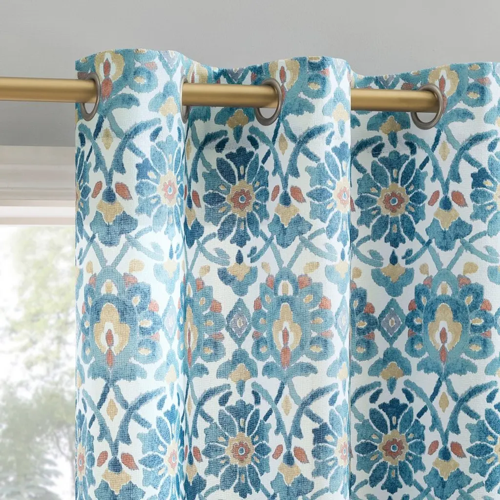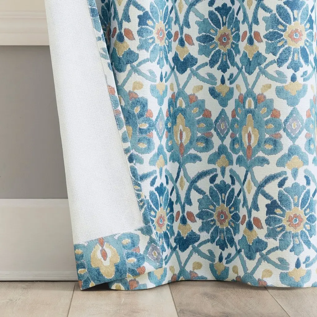 Add intrigue to any room of your home with the watercolar medallion print design of Hastings Curtain Panels by No. 918. Casual textured fabric. Gently filters light while enhancing privacy. Grommet top design allows for easy hanging on a standard curtain rod up to 1.5" in diameter. Machine washable. Panels sold individually. Measure carefully prior to purchase (Image features 2 panels). Sold as individual panels measuring 40" width by 63" length in color denim blue. Measure carefully before selecting your desired size and quantity. Rod not included. Machine wash cold on gentle cycle. Use only non-chlorine bleach when needed. Tumble dry on low heat, using a cool iron as needed.