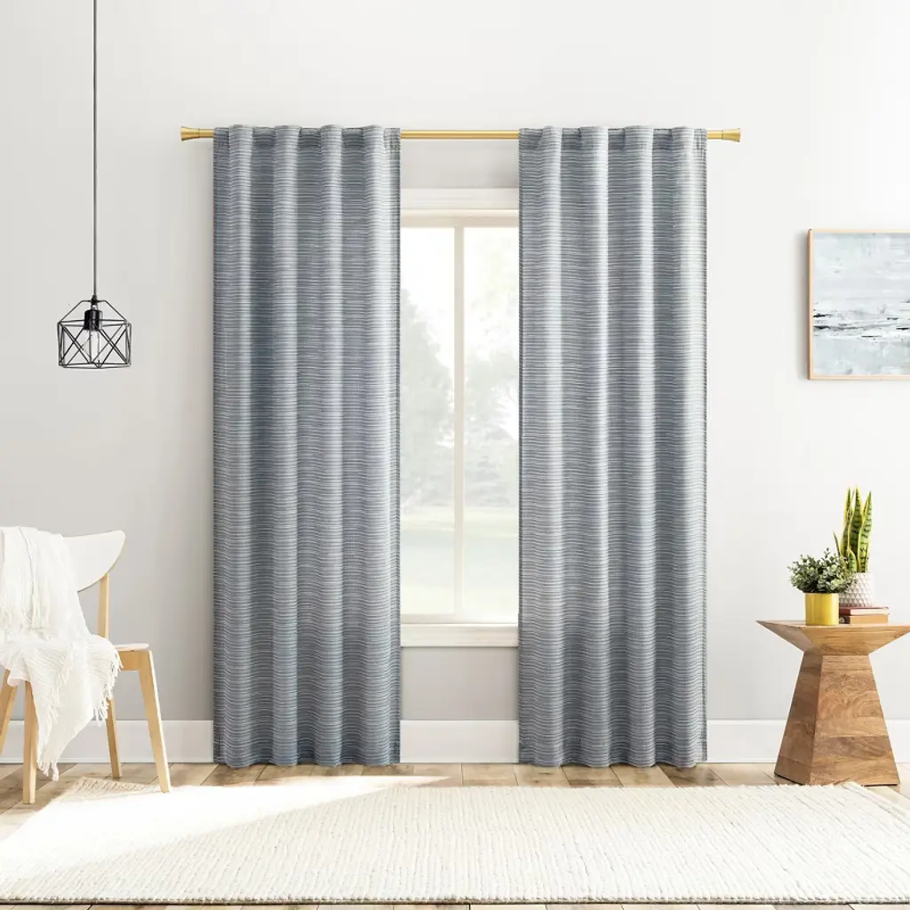 Add a layer of texture to any room of your home with the space dyed for added dimension of Laurel Curtain Panels by No. 918. Casual textured fabric. Hidden back tabs fit curtain rods up to 1.5" in diameter. Machine washable. Perfect for the bedroom or living room. Panels sold individually. Measure carefully prior to purchase (Image features 2 panels). Sold as individual panels measuring 40" width by 63" length in color denim blue. Measure carefully before selecting your desired size and quantity. Rod not included. Machine wash cold on gentle cycle. Use only non-chlorine bleach when needed. Tumble dry on low heat, using a cool iron as needed.