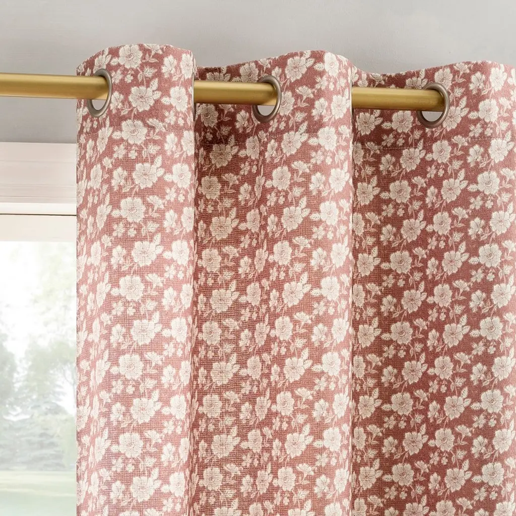Add botanical charm to any room of your home with the tonal floral printed design of Talia Curtain Panels by No. 918. Casual textured fabric. Gently filters light while enhancing privacy. Grommet top design allows for easy hanging on a standard curtain rod up to 1.5" in diameter. Machine washable. Panels sold individually. Measure carefully prior to purchase (Image features 2 panels). Sold as individual panels measuring 40" width by 63" length in color dusty terracotta. Measure carefully before selecting your desired size and quantity. Rod not included. Machine wash cold on gentle cycle. Use only non-chlorine bleach when needed. Tumble dry on low heat, using a cool iron as needed.
