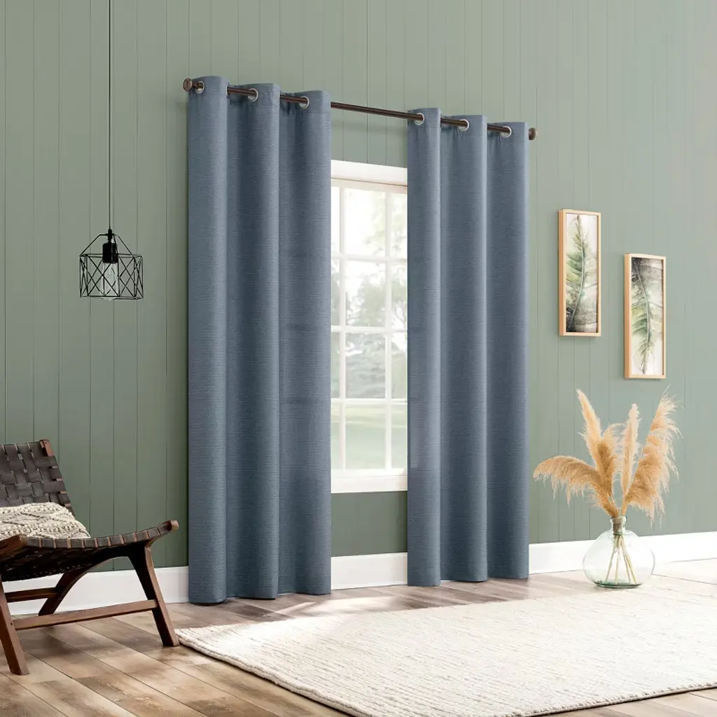 No. 918 1Pc 40"x84" Landon Textured Semi-sheer Grommet Curtain Panel Denim