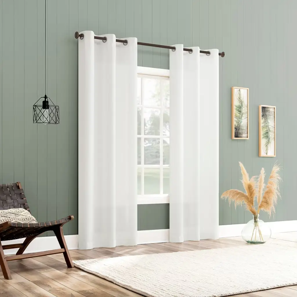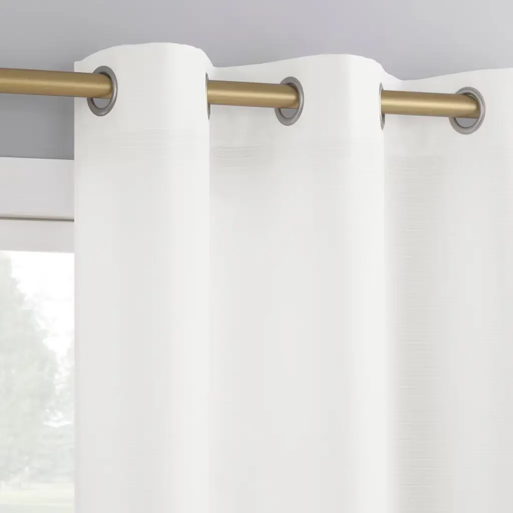 Add textured coziness to any room of your home with the woven casual textured fabric of Landon Curtain Panels by No. 918. Gently filters light while enhancing privacy. Grommet top design allows for easy hanging on a standard curtain rod up to 1.5" in diameter. Machine washable. Perfect for the bedroom or living room. Panels sold individually. Measure carefully prior to purchase (Image features 2 panels). Sold as individual panels measuring 40" width by 84" length in color white. Measure carefully before selecting your desired size and quantity. Rod not included. Machine wash cold on gentle cycle. Use only non-chlorine bleach when needed. Tumble dry on low heat, using a cool iron as needed.