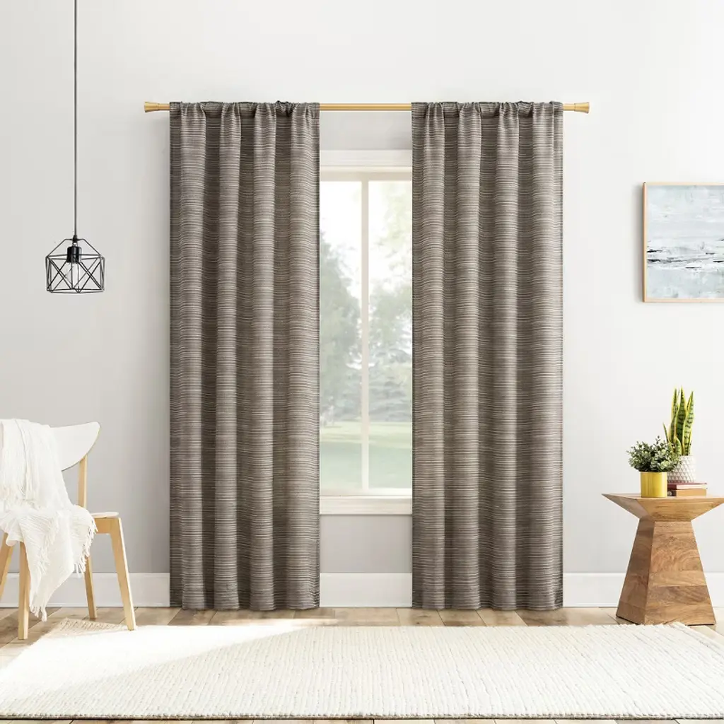 Add a layer of texture to any room of your home with the space dyed for added dimension of Laurel Curtain Panels by No. 918. Casual textured fabric. Hidden back tabs fit curtain rods up to 1.5" in diameter. Machine washable. Perfect for the bedroom or living room. Panels sold individually. Measure carefully prior to purchase (Image features 2 panels). Sold as individual panels measuring 40" width by 84" length in color mocha brown. Measure carefully before selecting your desired size and quantity. Rod not included. Machine wash cold on gentle cycle. Use only non-chlorine bleach when needed. Tumble dry on low heat, using a cool iron as needed.