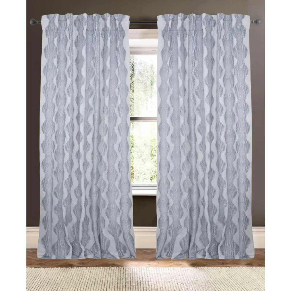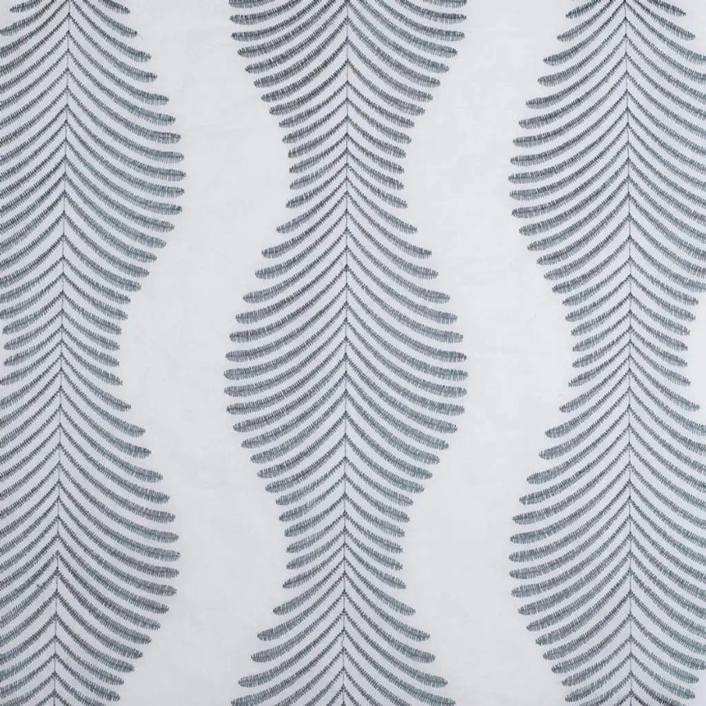 Jazz up a room with refreshing white and gray curtains. Wide fern-like embroidery provides a contemporary update flanking a window or door!