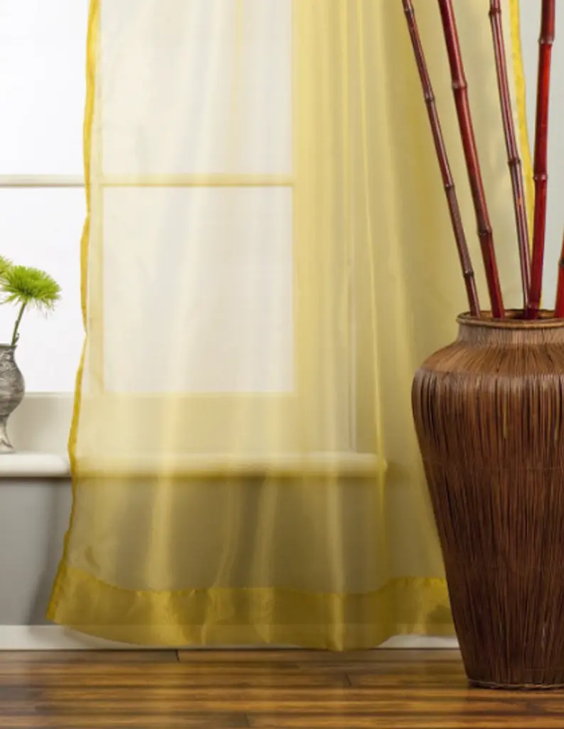 Size of each curtain: 43 Inches wide X 84 Inches drop and Can be hung from a standard or decorative curtain rod Made of Polyester Tissue sheer fabric Top: 4 Inches Loops. Can accommodate curtain rods up to 3.5 Inches diameter Hand wash or Machine Wash Sold per piece. The price mentioned is for 1 curtain. These beautiful and classic sheer curtains are unmatched in quality and design. These window panels create a warm atmosphere with beautiful light diffusion. Discover the versatility of our finest lightweight fabric with the Tissue sheer window treatments from Indian Selections. These beautiful and classic sheer curtains are unmatched in quality and design. These window panels create a warm atmosphere with beautiful light diffusion. Discover the versatility of our finest lightweight fabric with the Tissue sheer window treatments from Indian Selections.