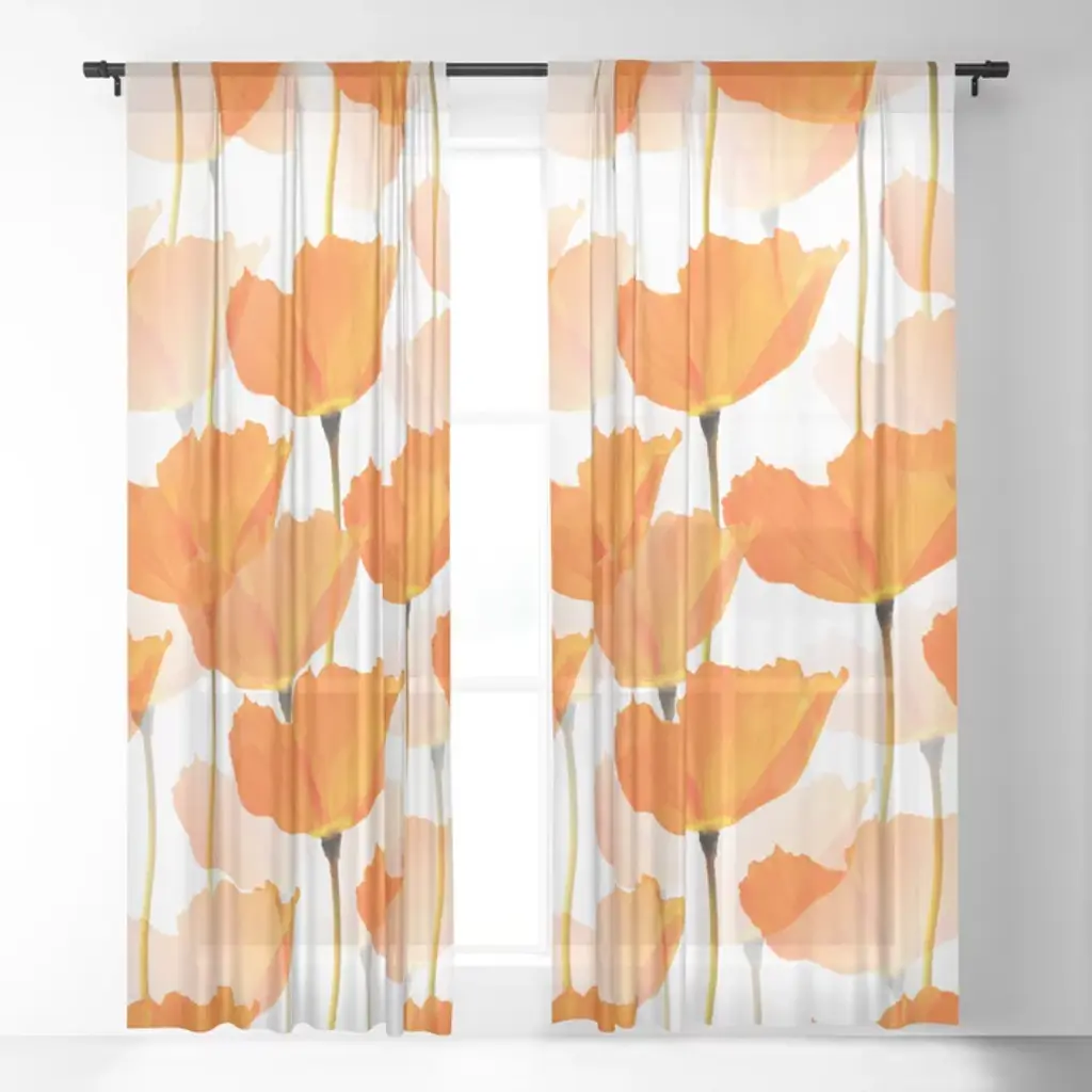 Orange Poppies On A White Background #Decor #Society6 #Buyart Curtain