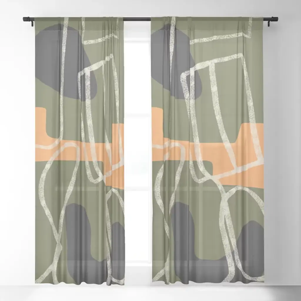 Blackout curtains are crafted with 100% woven polyester with a linen-like texture.Light-Filtering curtains are crafted with 100% mid-weight polyester.Sheer curtains are crafted with 100% lightweight polyester.Single sided print with white on reverse.Available in single or double panel options (double panels feature the same design on both).4" bottom pocket for easy hanging on any curtain rod (please note: artwork will appear upside down on non-patterned designs).Machine washable for easy care.Please note: Color variations may occur between on-site previews, your screen, and the printed fabric.Blackout, Light-Filtering, and Sheer Curtains are easy to care for:Machine wash cold.Use gentle cycle.Tumble dry low.SHIPPING: Items are made to order and typically ship within 3-4 business days. Click here for more information about delivery options.RETURNS: Return requests can be made within 30 days of your item(s) delivery. Click here for more information on returns.