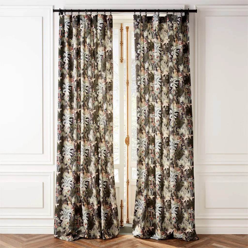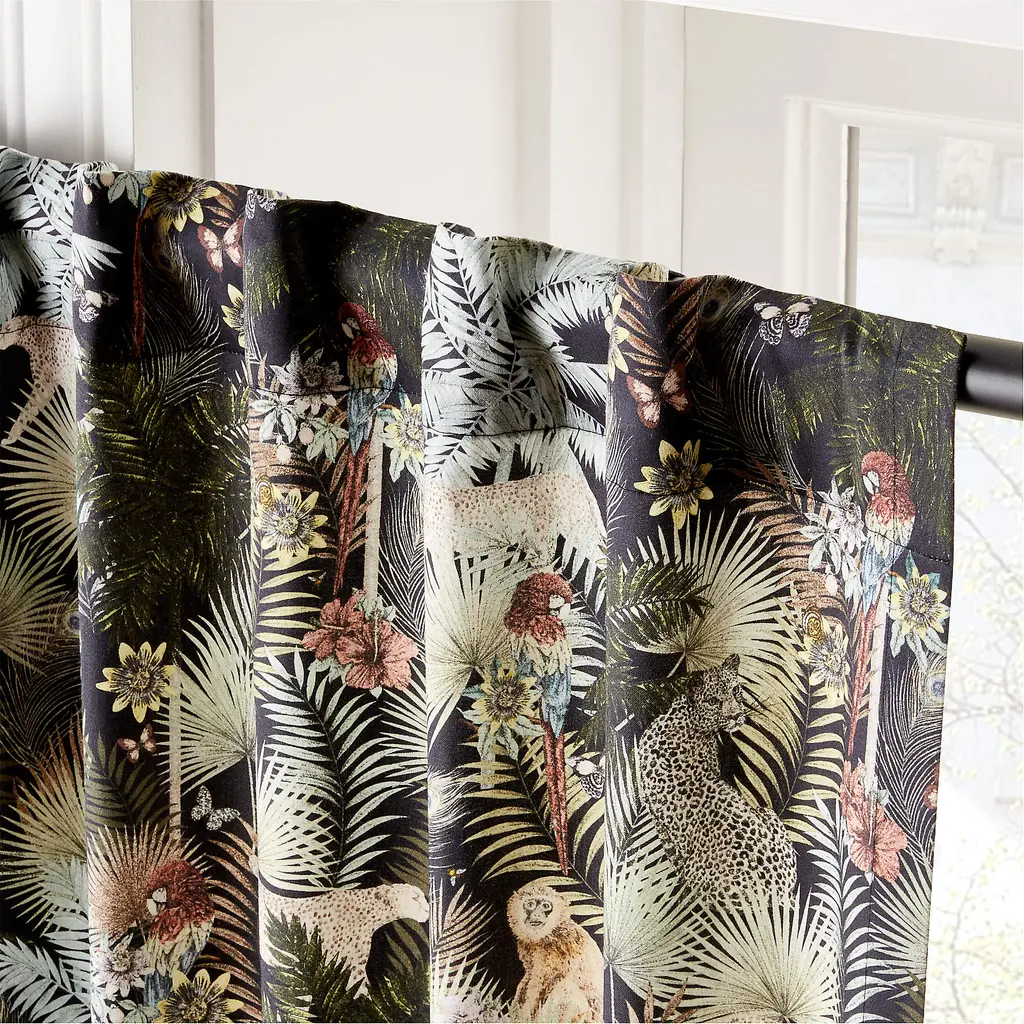 Curtain panel by iconic English designer Matthew Williamson features macaws, butterflies and jaguars slinking through palm tree foliage. Rendered in lush, vivid detail, the print brings a touch of the tropics to the window. CB2 exclusive.
