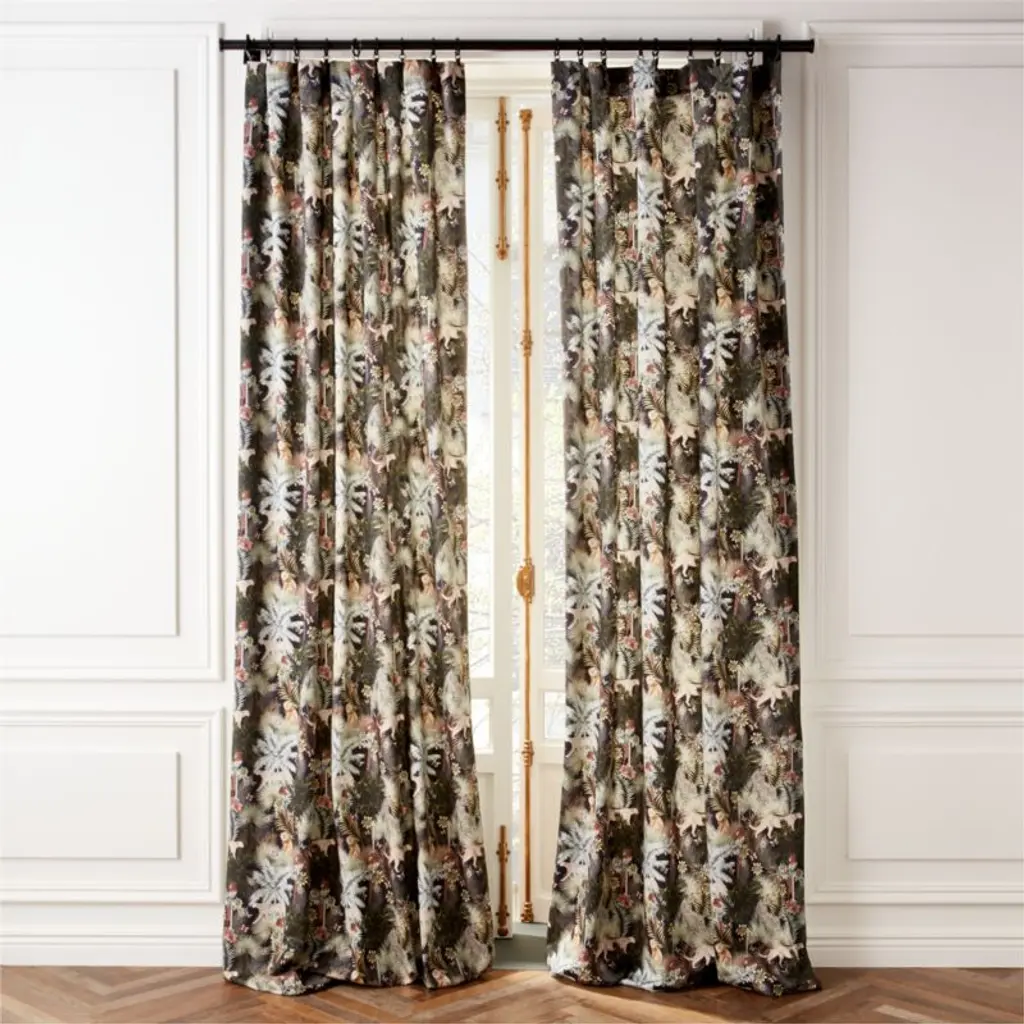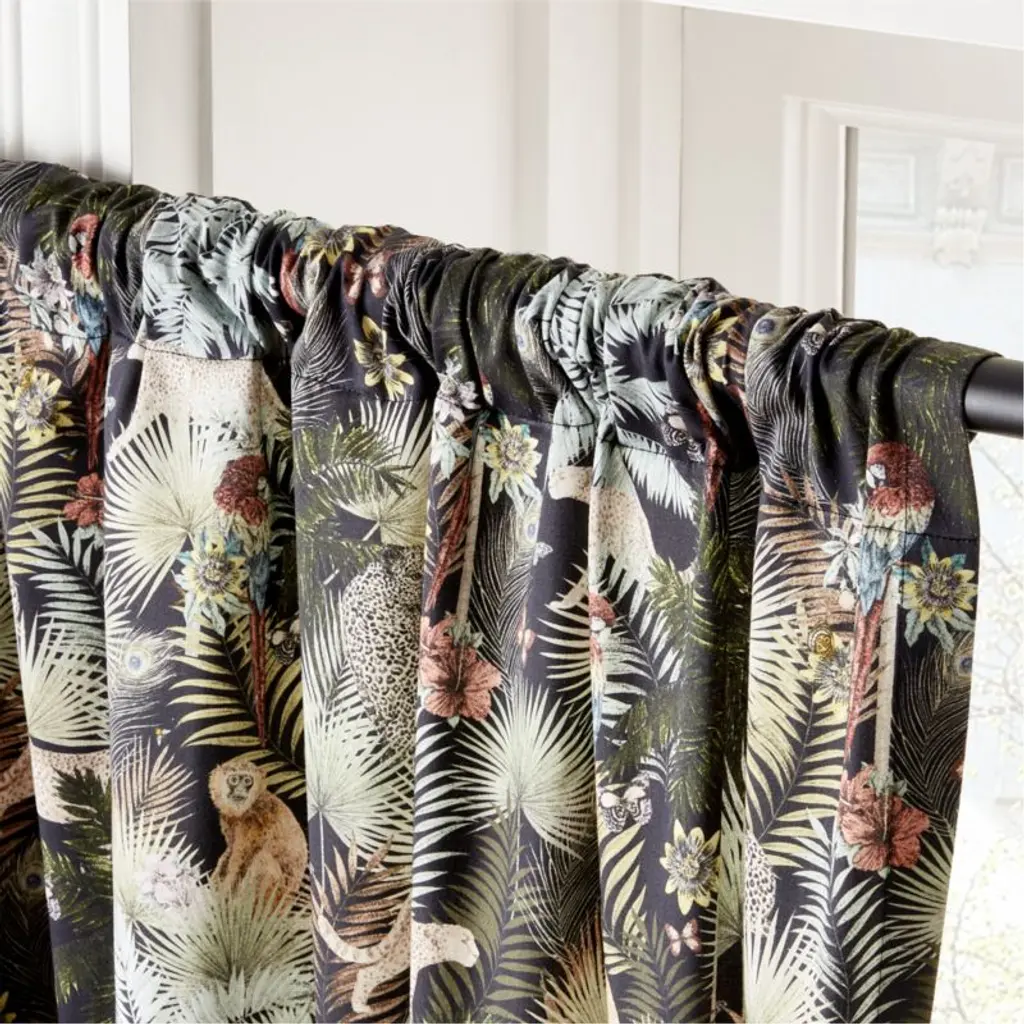 Curtain panel by iconic English designer Matthew Williamson features macaws, butterflies and jaguars slinking through palm tree foliage. Rendered in lush, vivid detail, the print brings a touch of the tropics to the window. CB2 exclusive.