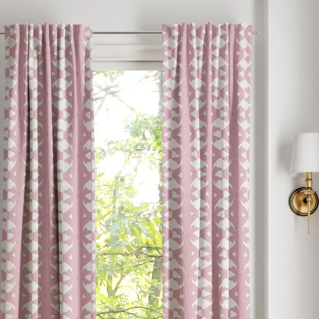Softly hued in shades of pink and white, these curtains will elevate your room in a calming, tranquil bliss. The delicate and feminine design is perfect for a little girl's room or living room spaces.