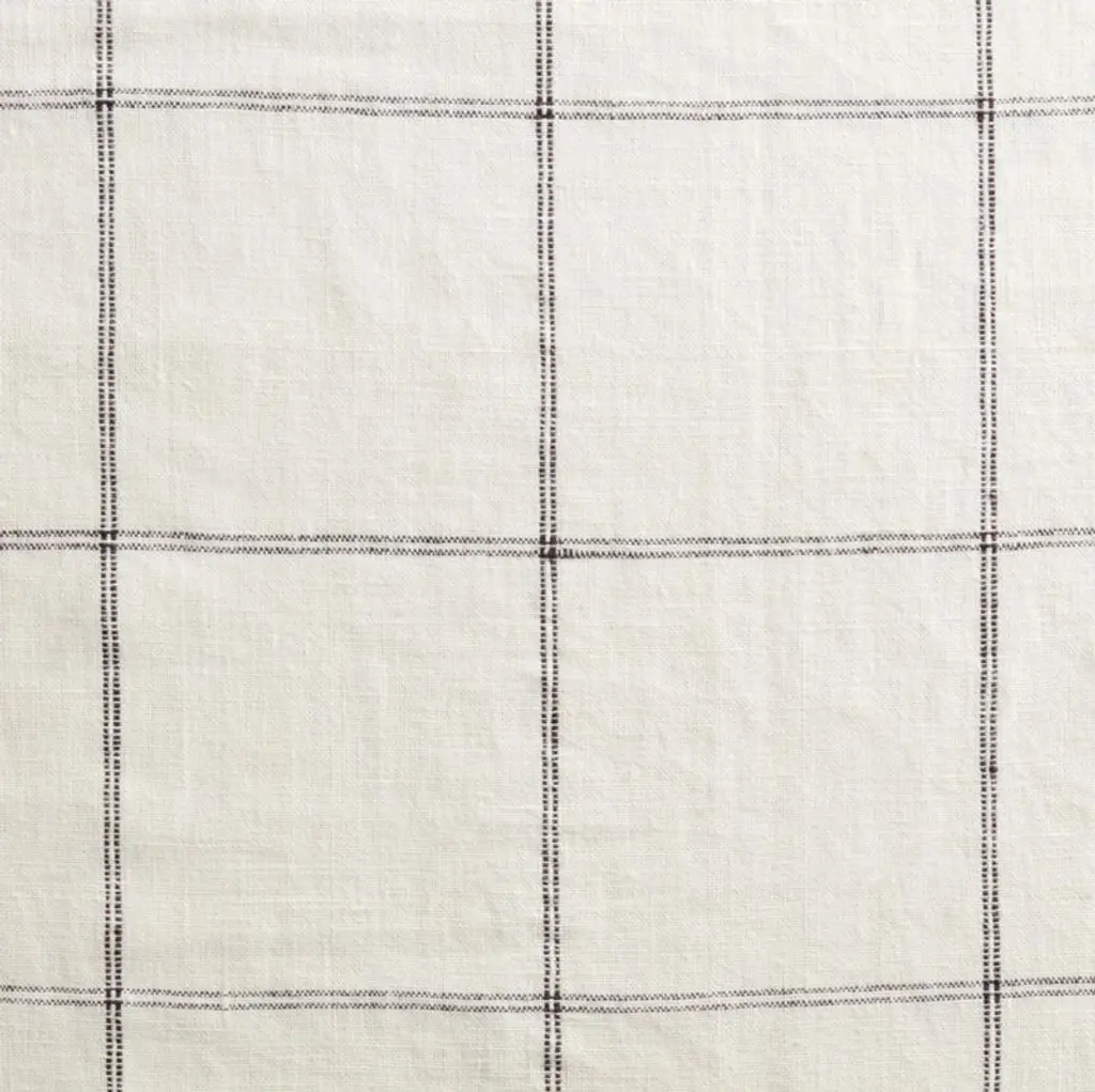 Pampas Ivory & Storm Grey Linen Double Pinstripe Grid Window Curtain Panel 52"x96"