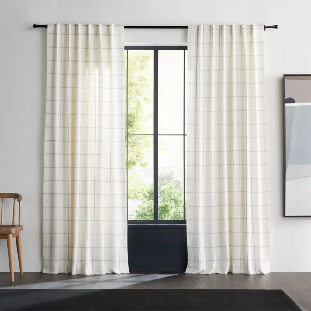 Our curtain panels frame windows with the breezy look of natural linen. Showcasing the organic beauty of woven linen, the ivory curtain has a hint of decor-friendly pattern in windowpane checks composed of double-lined pinstripes in cool grey. Hang our cotton-lined linen curtains from the back tabs for an elegant pleated style, use the rod pocket to create a more laid-back gathered look or add a set of our curtain clips (sold separately).Try it on first. Since color representation may vary by screen, using a swatch is an easy way to see exactly how your favorite curtain panels will look in your home. Choose up to five free curtain swatches, and we'll ship them to you at no cost.Curtain hardwarealso available.Learn how to hang curtains in our guide.