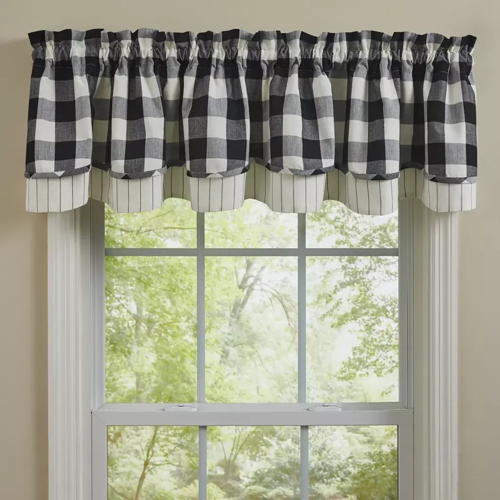 Park Designs Buffalo Check Lined Layered Black Valance 16"l