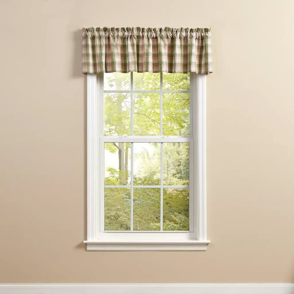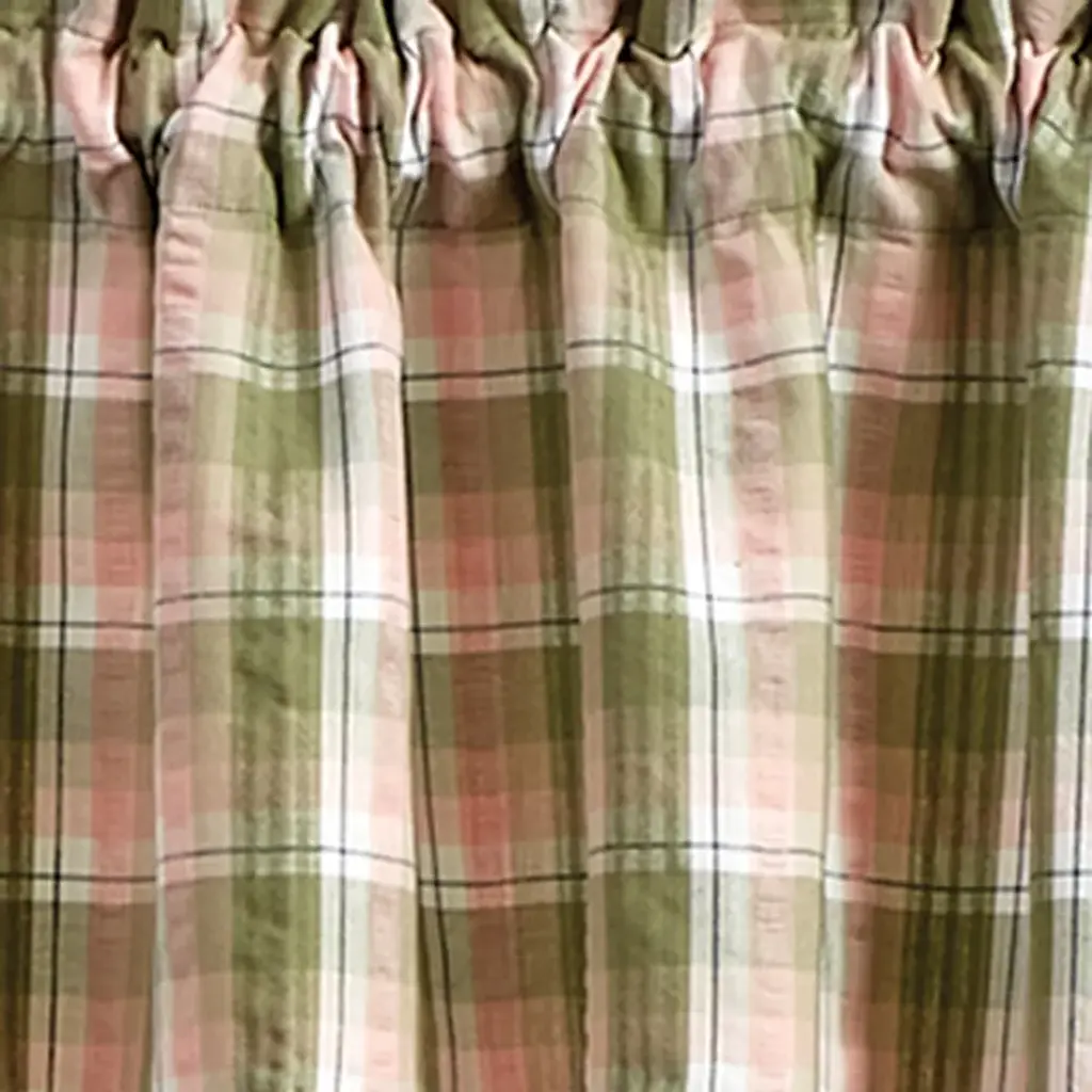 Create a warm and bold statement for your window with this soft pink and green plaid valance. You will quickly fall in love with the classic appeal this window treatment adds to your home decor with its timeless design. The natural ruffling of the fabric at the top paired with its simple check will create a pretty, country look without having to redecorate an entire room.