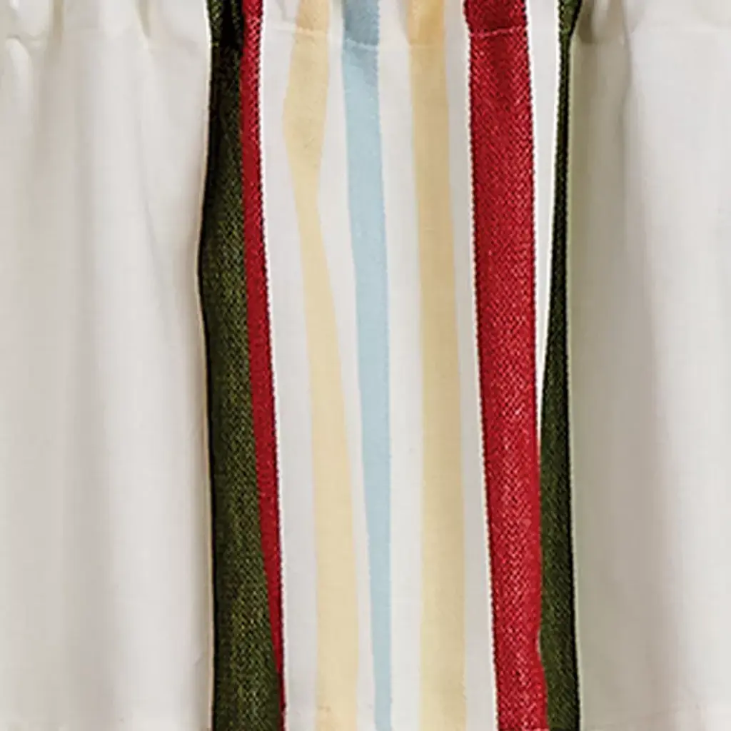 Create a warm and bold statement for your window with this green, blue, yellow, and red stripe valance. You will quickly fall in love with the classic appeal this window treatment adds to your home decor with its timeless design. The natural ruffling of the fabric at the top paired with its simple check will create a pretty, country look without having to redecorate an entire room.