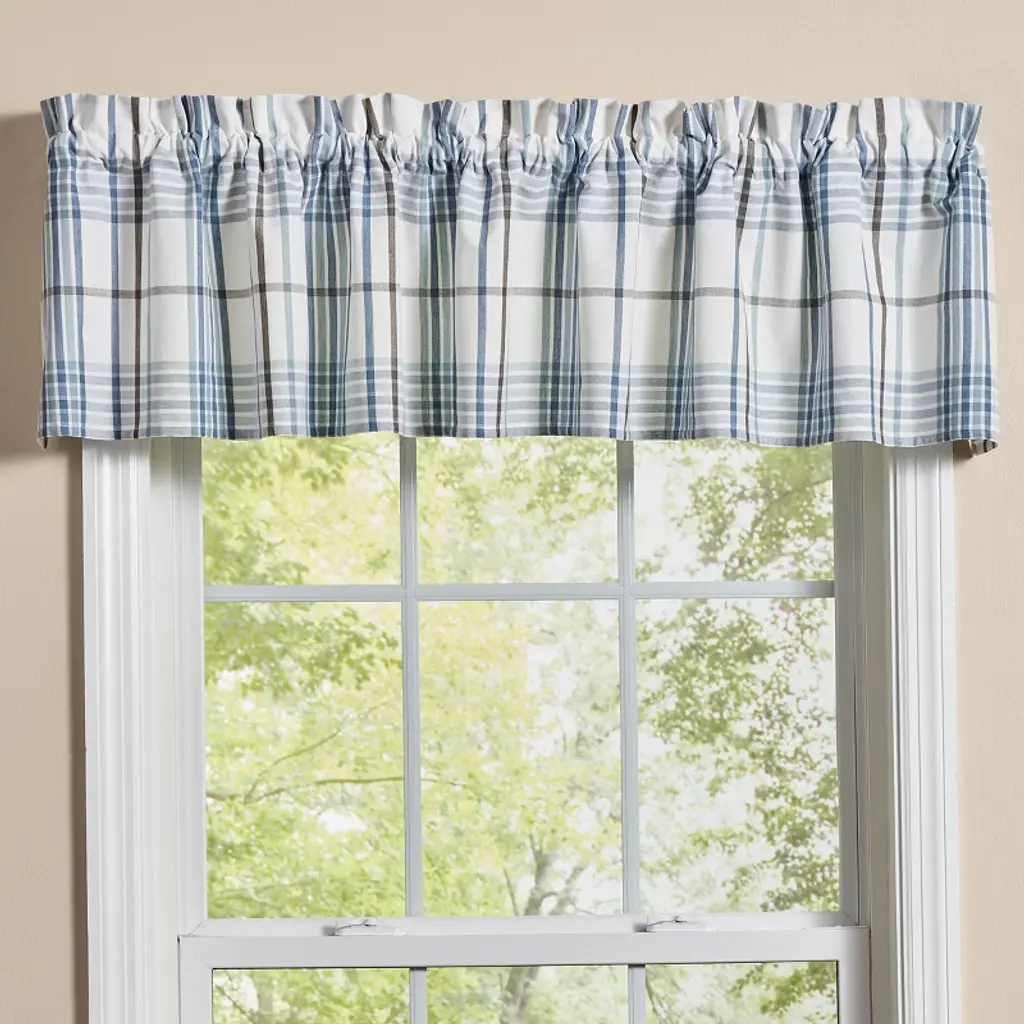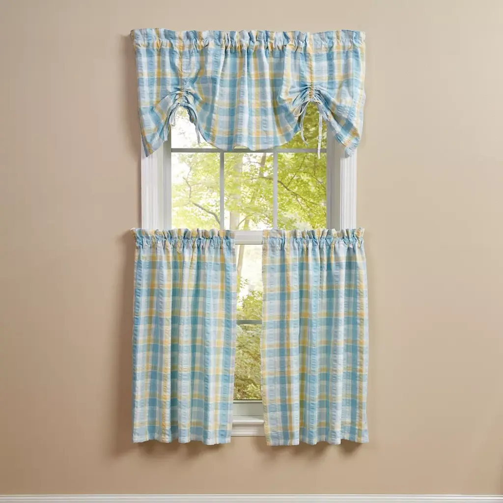 Update any room in the house with this beautiful plaid valance that delicately frames a window and softens the light to create a comfortable, cozy ambiance. Combines sky blue and bright yellow hues with a traditional plaid pattern to produce a comfy area in a living room, dining area, bedroom and more spaces. This subtle spring valance window treatment has a lined element that adds a classic country farmhouse appeal to your seasonal wall decor with its timeless design. The natural ruffling of the fabric at the top paired with its unique design will create a stylish look without having to redecorate an entire room.
