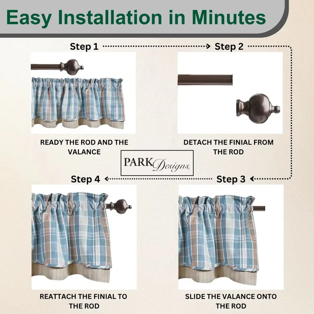 Park Designs Jordan Plaid Lined Layered Valance 72" X 16"