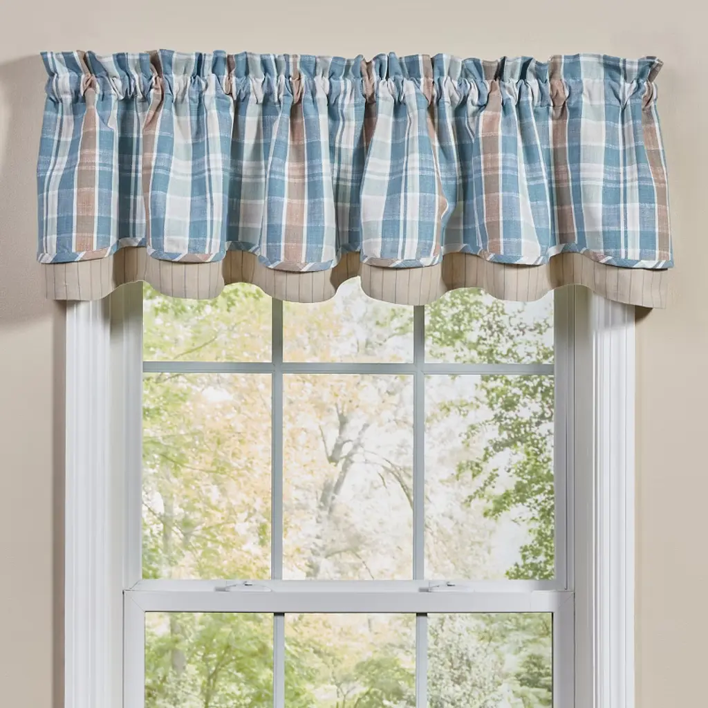 Bring in beautiful blue hues! This layered pattern valance curtain has a classic plaid and stripe tiered design that elegantly incorporates a pastel color palette of light blue, coral, and cream hues. The lined element softens outdoor lighting for a comfortable, cozy ambiance. Offers a timeless look without having to redecorate an entire room that can be used by itself or paired with your favorite tier or curtain panel for a dynamic display. This casual window treatment can be used time and time again in your favorite farmhouse, country chic, summer, and coastal room decor.