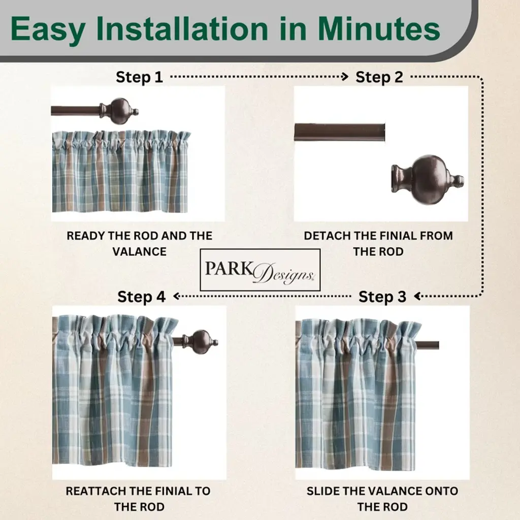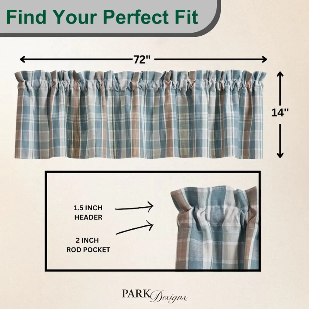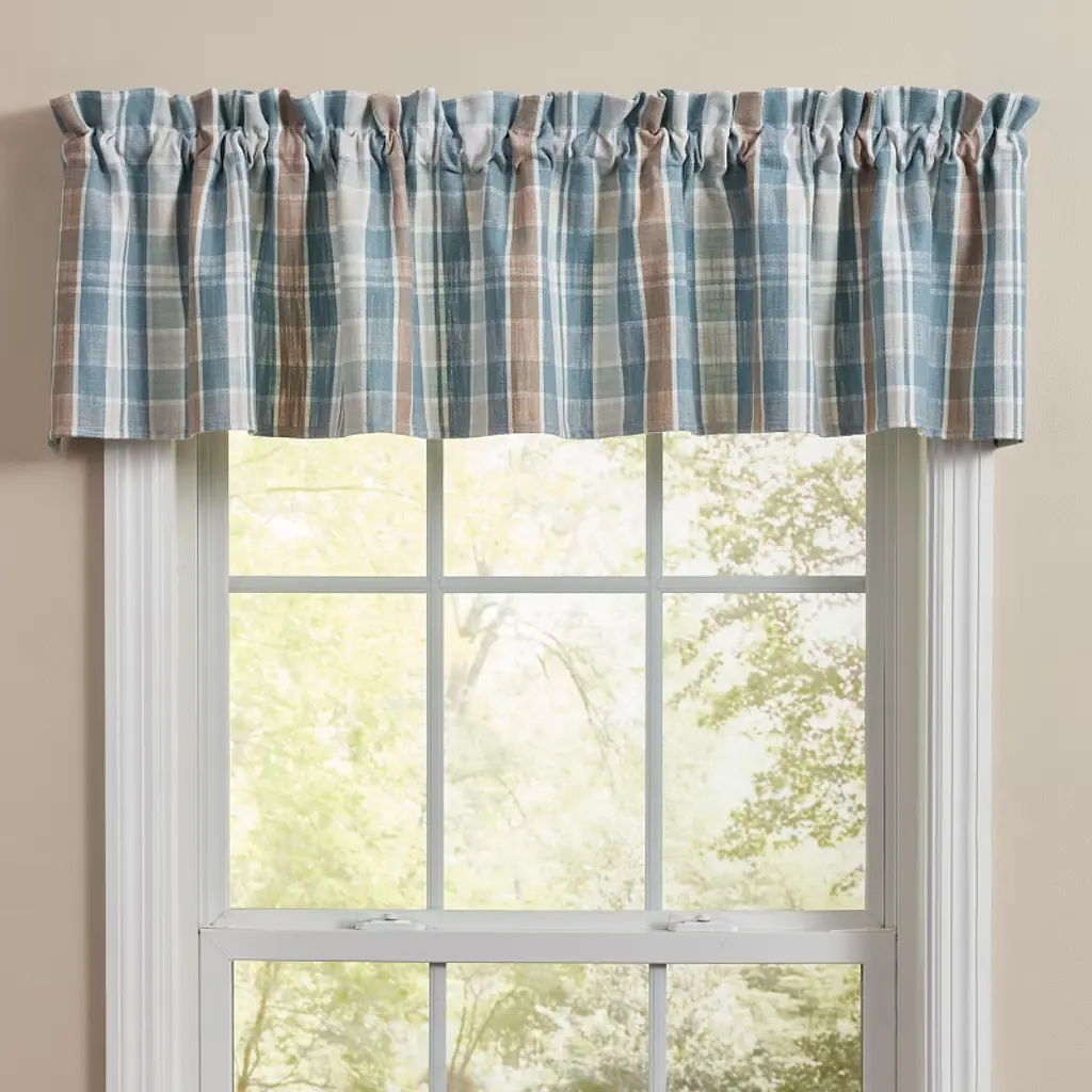 Bring in beautiful blue hues! This pattern valance curtain has a classic plaid design that elegantly incorporates a pastel color palette of light blue, coral, and cream hues. Features an unlined fabric and natural ruffling to offer a timeless look without having to redecorate an entire room that can be used by itself or paired with your favorite tier or curtain panel for a dynamic display. This window treatment can be used time and time again in your favorite farmhouse, country chic, summer, and coastal room decor.