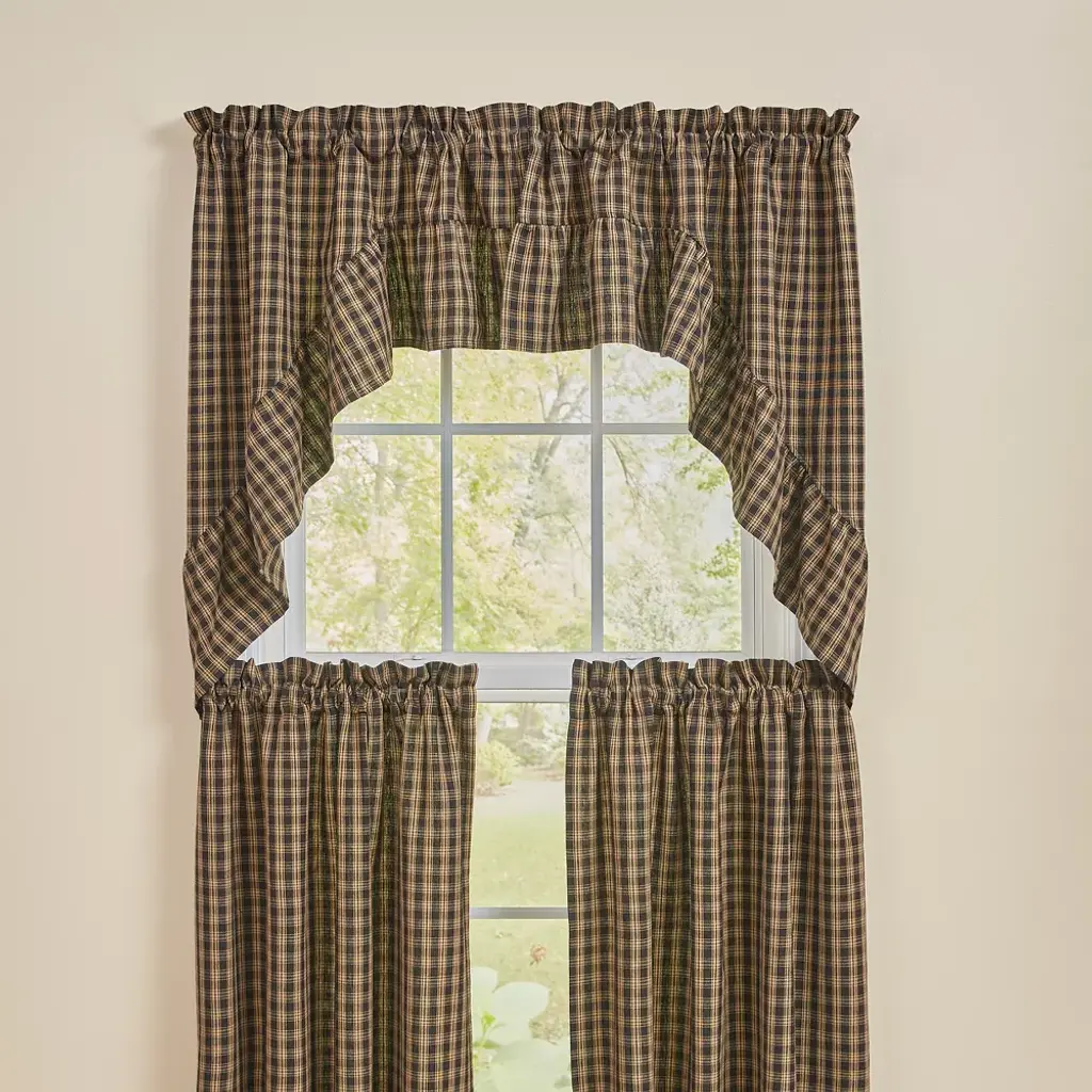 Frame your windows with timeless charm and soft elegance using our Sturbridge Swags, thoughtfully designed to bring warmth and a cozy farmhouse feel to any space. These classic window toppers are the perfect blend of traditional style and everyday functionality, ideal for kitchens, dining rooms, living areas, or bedrooms. Featuring a signature plaid or checkered pattern, each piece adds a rustic accent that coordinates beautifully with country, cottage, farmhouse, or colonial-style décor. The gentle curve of the swag softly frames your window, creating a layered, finished look that’s both inviting and refined. Made from a high-quality, easy-care cotton/poly blend, these swags offer long-lasting beauty and a graceful drape. A rod pocket top ensures easy hanging on standard curtain rods for a seamless fit. Pair your swags with matching valances, tiers, or panels from the Sturbridge Collection to create a warm and welcoming space throughout your home.