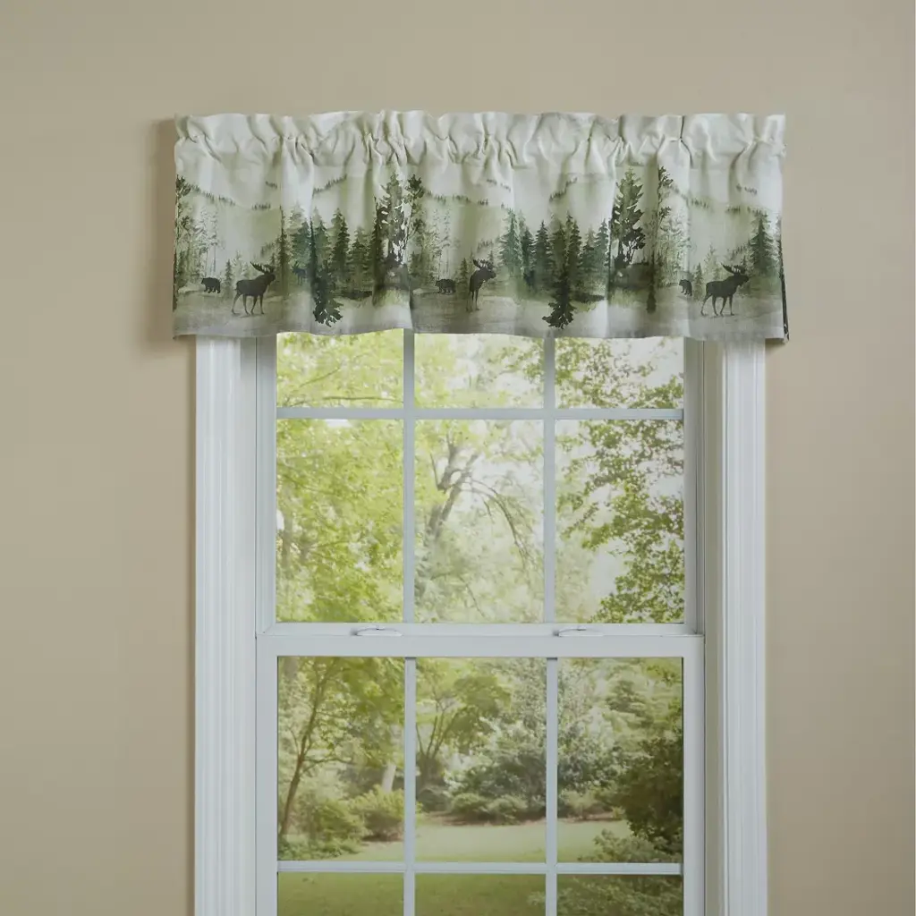 Top off your window with a mossy green design of trees and silhouetted wildlife. The rustic touch captures the beauty of nature inside the comfort of your home with this ruffled window valance. Add this piece to your space to introduce a fresh look without having to redecorate the entire room.