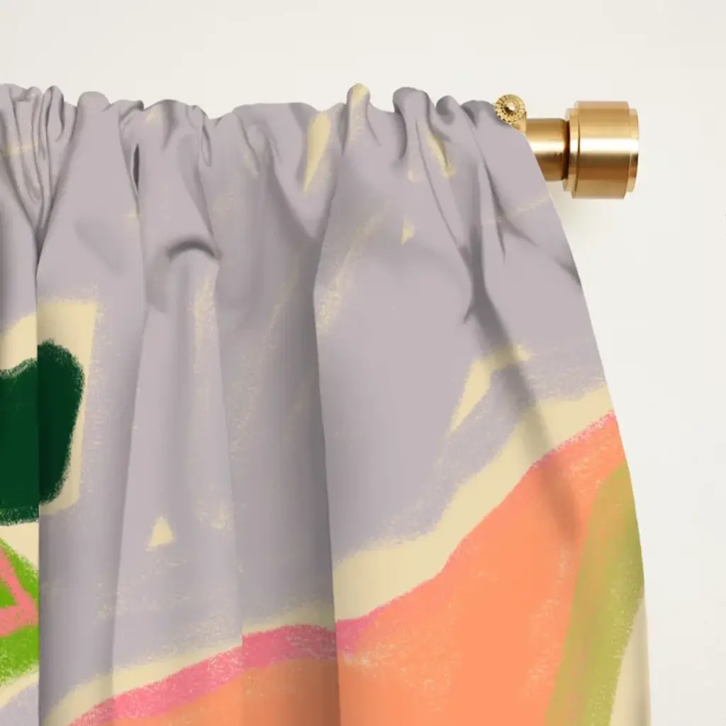 Blackout curtains are crafted with 100% woven polyester with a linen-like texture.Light-Filtering curtains are crafted with 100% mid-weight polyester.Sheer curtains are crafted with 100% lightweight polyester.Single sided print with white on reverse.Available in single or double panel options (double panels feature the same design on both).4" bottom pocket for easy hanging on any curtain rod (please note: artwork will appear upside down on non-patterned designs).Machine washable for easy care.Please note: Color variations may occur between on-site previews, your screen, and the printed fabric.Blackout, Light-Filtering, and Sheer Curtains are easy to care for:Machine wash cold.Use gentle cycle.Tumble dry low.SHIPPING: Items are made to order and typically ship within 3-4 business days. Click here for more information about delivery options.RETURNS: Return requests can be made within 30 days of your item(s) delivery. Click here for more information on returns.