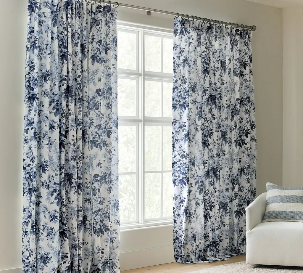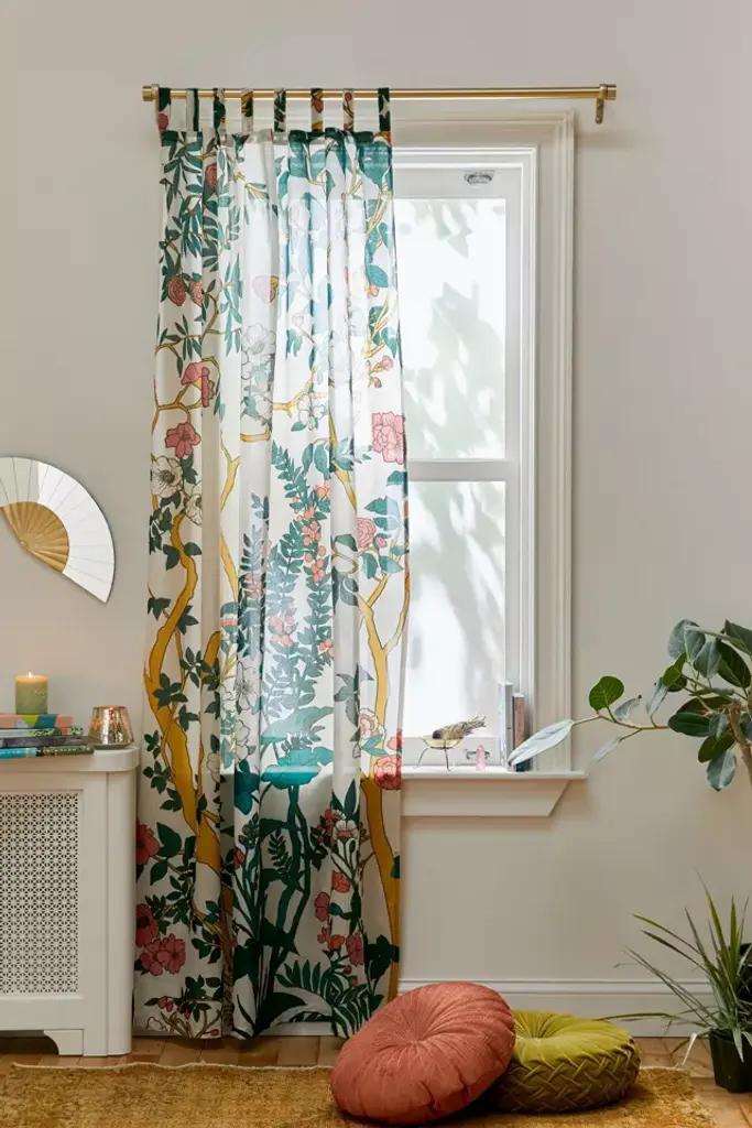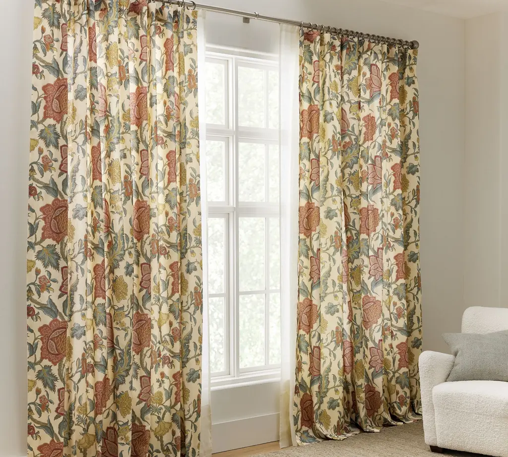 The traditional flora and fauna motif on our curtain dresses up the room with warm color. It's made from a linen-cotton blend for soft texture.