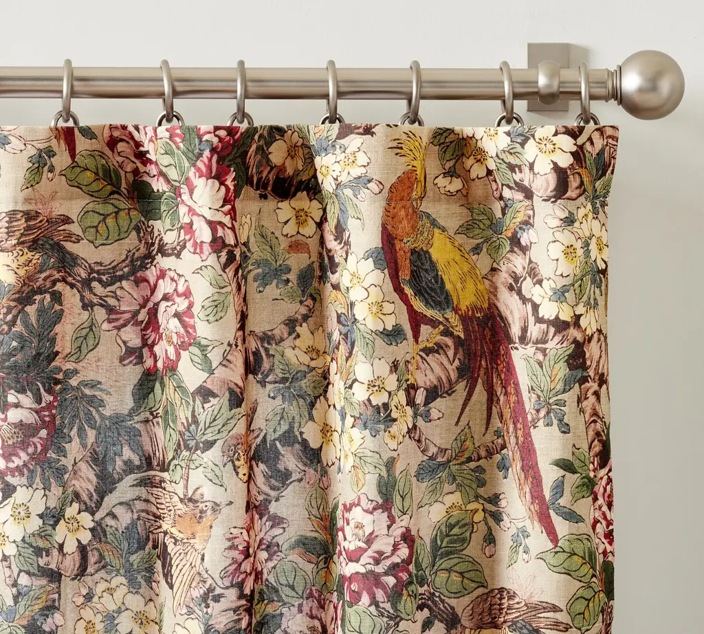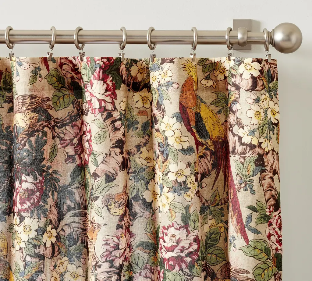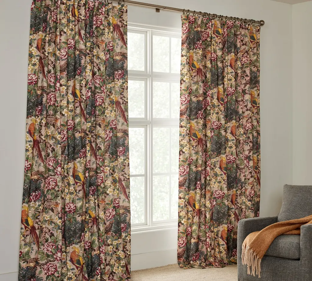 The traditional flora and fauna motif on our curtain dresses up the room with warm color. It's made from a linen-cotton blend for soft texture.