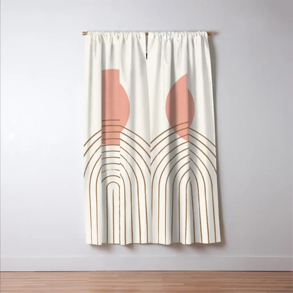 Blackout curtains are crafted with 100% woven polyester with a linen-like texture.Light-Filtering curtains are crafted with 100% mid-weight polyester.Sheer curtains are crafted with 100% lightweight polyester.Single sided print with white on reverse.Available in single or double panel options (double panels feature the same design on both).4" bottom pocket for easy hanging on any curtain rod (please note: artwork will appear upside down on non-patterned designs).Machine washable for easy care.Please note: Color variations may occur between on-site previews, your screen, and the printed fabric.Blackout, Light-Filtering, and Sheer Curtains are easy to care for:Machine wash cold.Use gentle cycle.Tumble dry low.SHIPPING: Items are made to order and typically ship within 3-4 business days. Click here for more information about delivery options.RETURNS: Return requests can be made within 30 days of your item(s) delivery. Click here for more information on returns.