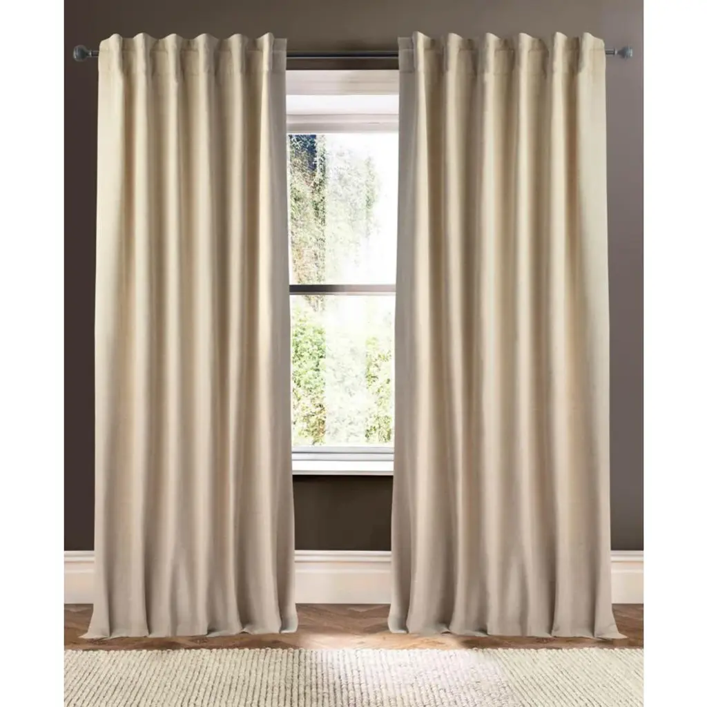 Gorgeous and substantial linen curtain panels can add a refreshing update to your space. From bedroom to living spaces, these panels provide beautiful framing or coverage for windows. This linen is a heavier weight and tighter weave compared to lighter weight linens. Lined with ivory cotton/sateen fabric.