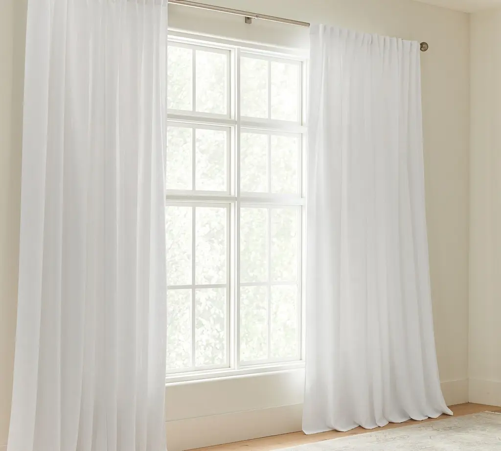 Plain Sheer Ivory Linen Curtain Panel (Size Options)
