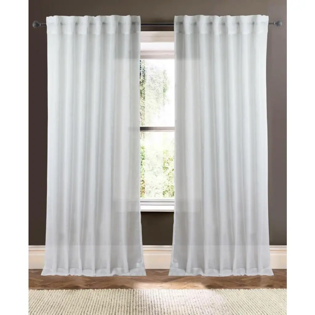 Plain Sheer White Linen Curtain Panel (Size Options)