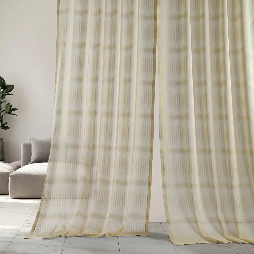 Polaris Patterned Linen Sheer Curtain, Polaris Tan, 50"x96"
