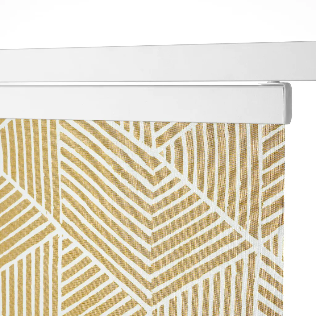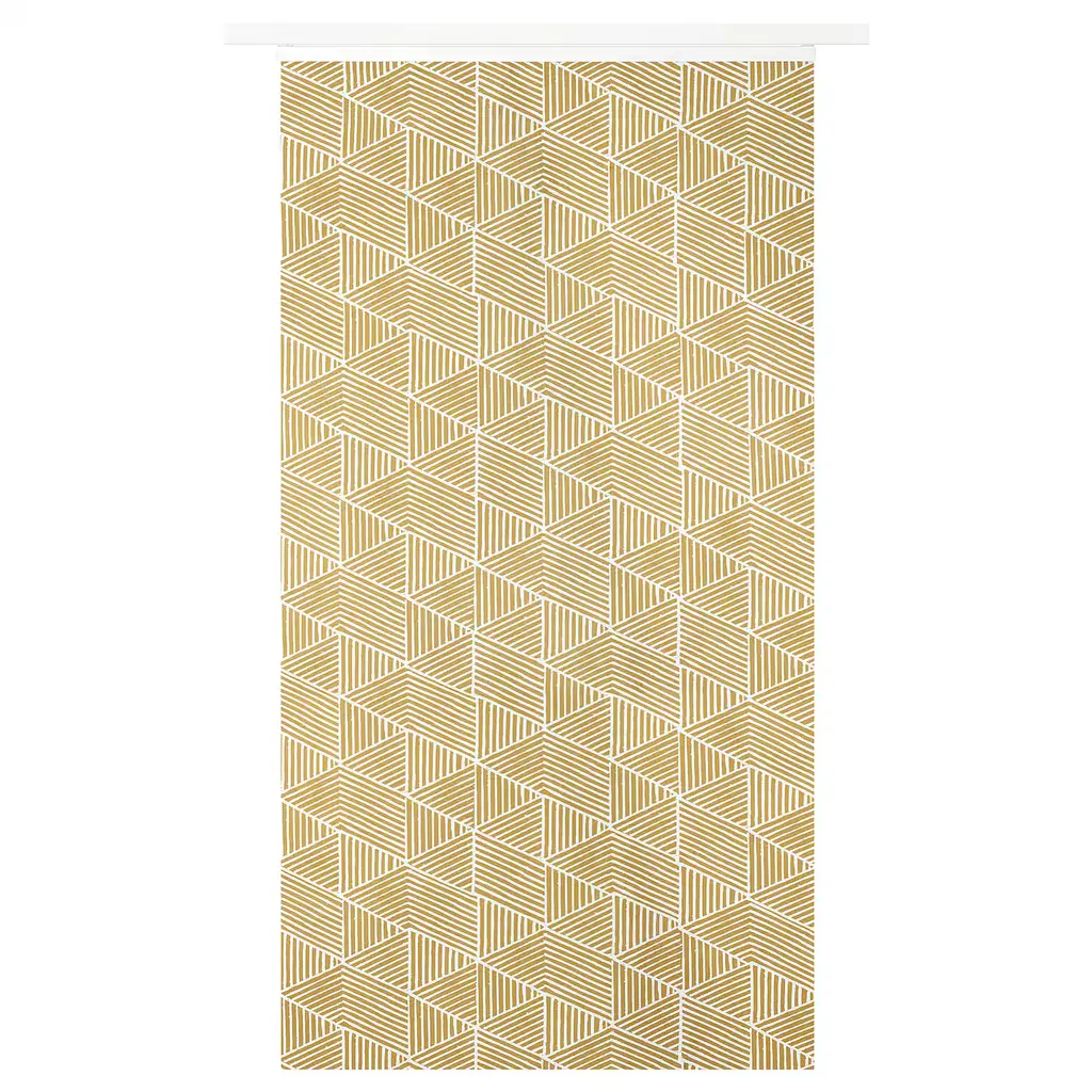 PRÄRIEOXALIS Panel curtain - yellow 24x118 ". Can be easily cut to the desired length without hemming. The decorative geometric pattern makes the room feel vibrant and welcoming. The curtain diffuses light from outside and prevents people from seeing directly into the room.