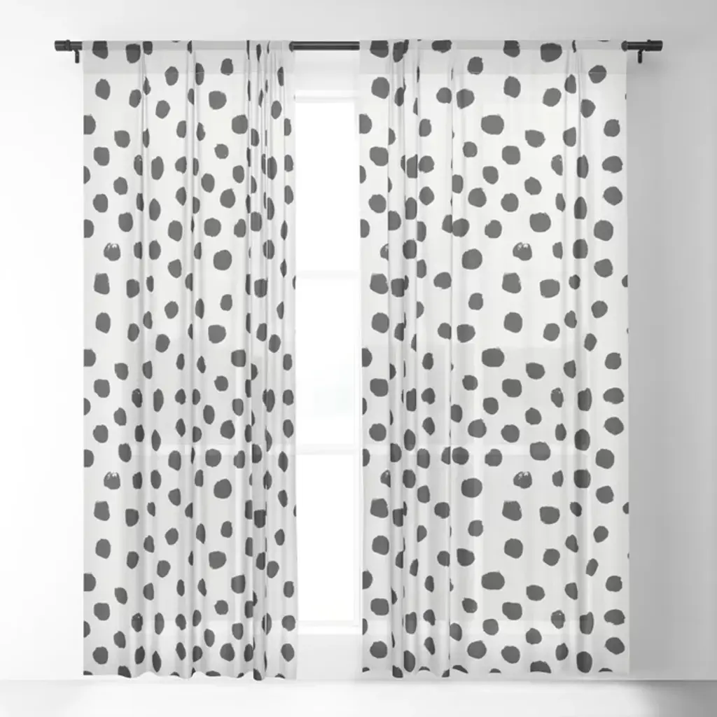 Preppy Brushstroke Free Polka Dots Black And White Spots Dots Dalmation Animal Spots Design Minimal Curtain