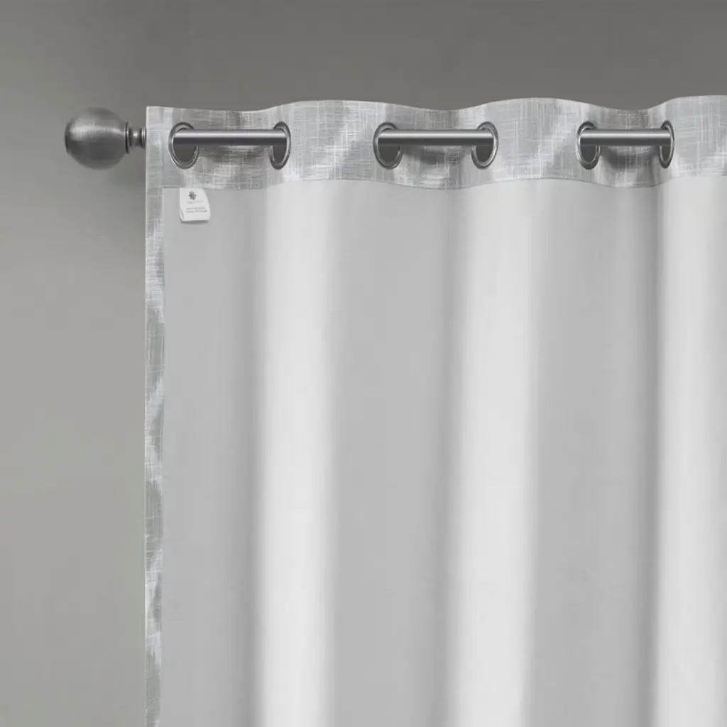 Introducing a modern and stylish take on energy efficiency, our SunSmart Blakesly Printed Ikat Blackout Patio Panel is the perfect update to any room. Fresh and chic, this patio panel features a printed aqua ikat design on a textured firm base fabric, creating dimension for a cool and casual look. Finished with a two pass foamback and bonding technique, the panel is enhanced to block most sunlight and create a significant barrier to reduce outside noise. Silver grommet top detail makes it easy to hang, open, and close panels throughout the day; while fitting up to a standard 1.25” diameter rod. With considerable energy savings and a high level of added privacy, this blackout patio panel is perfect for any wide or average window space by providing full coverage with its extra width. Give your space a beautiful, one-of-a-kind update with this contemporary blackout patio panel. Lighting level: Heavily Shaded Ambiance.