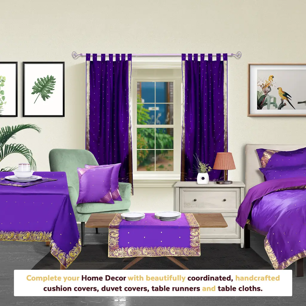 Purple Tab Top Sheer Sari Curtain / Drape / Panel - Pair
