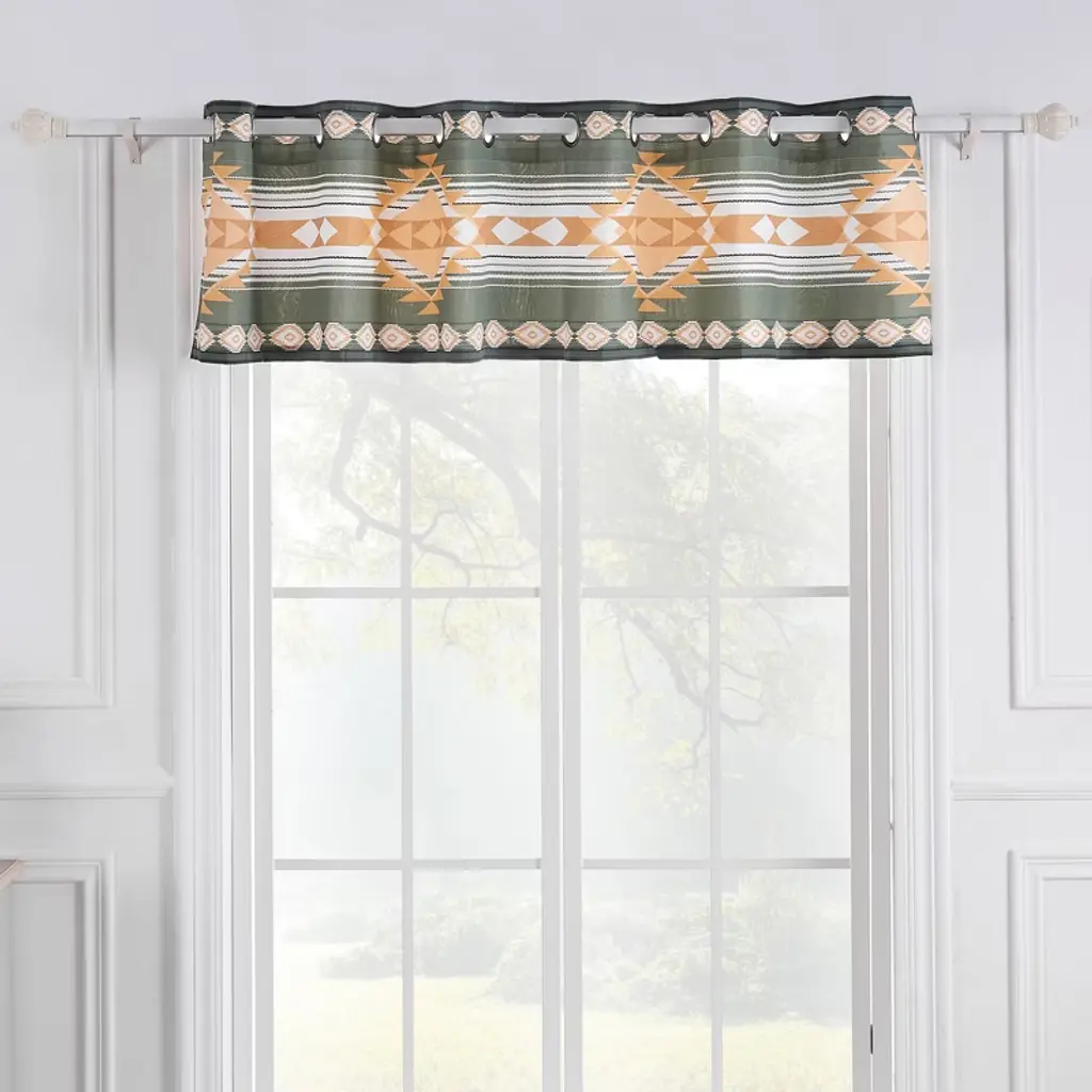 Redrock Canyon Valance 60x15.Red Rock Canyon: 40% Acrylic, 30% Polyester, 25% Wool, 5% Other. Decorative Blanket Stitch On Outer Edge. 3" Rod Pocket, 1.5"Header.