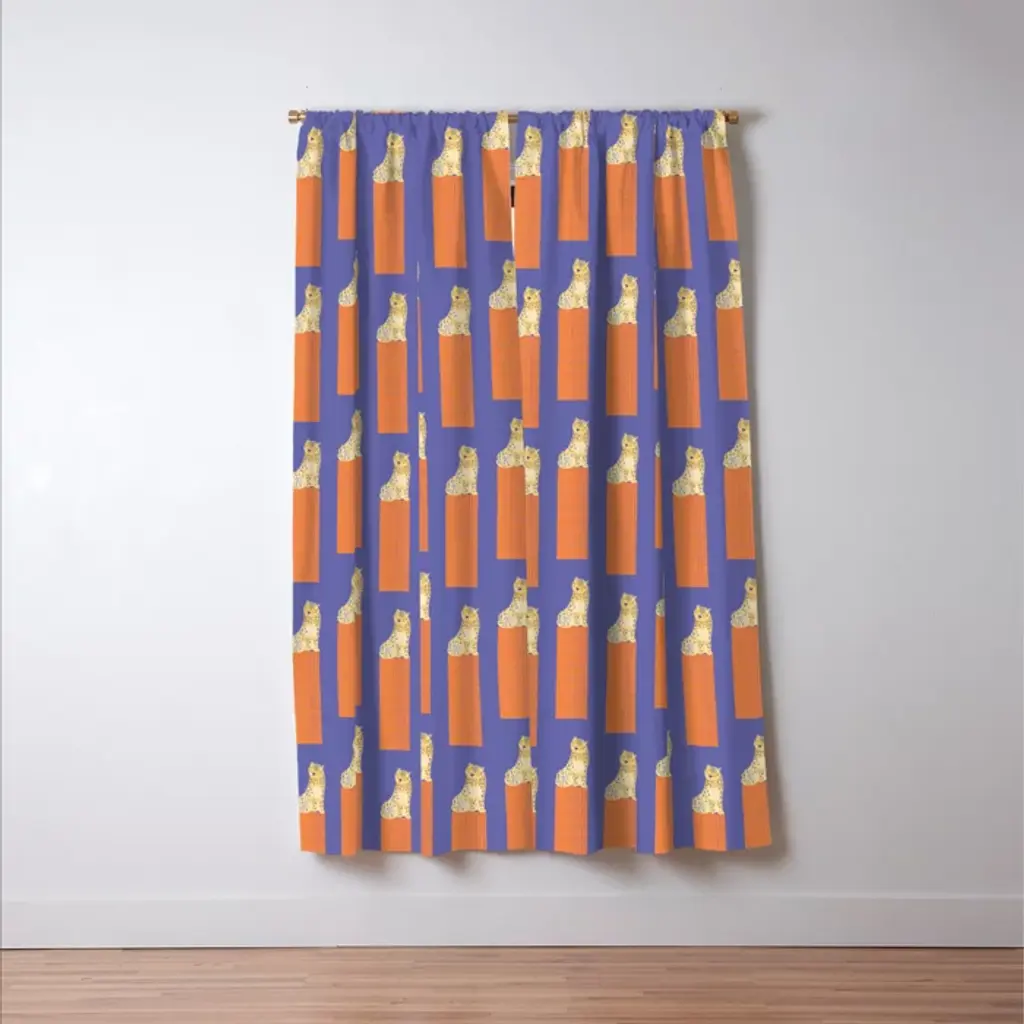 Relaxing Leopard - Orange And Very Peri Curtain